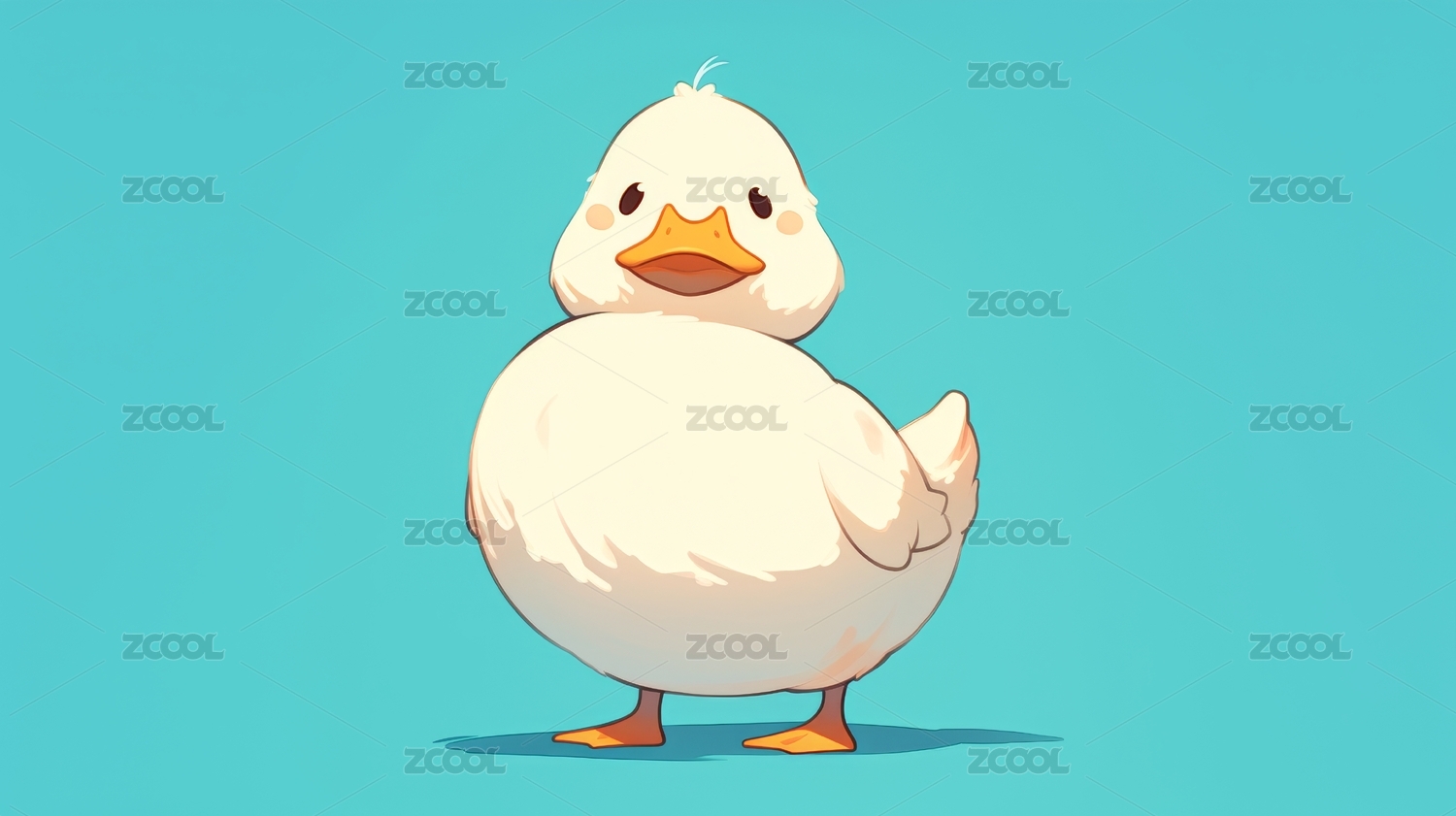 绿色背景上孤立站着的鸭子动物矢量扁平插画