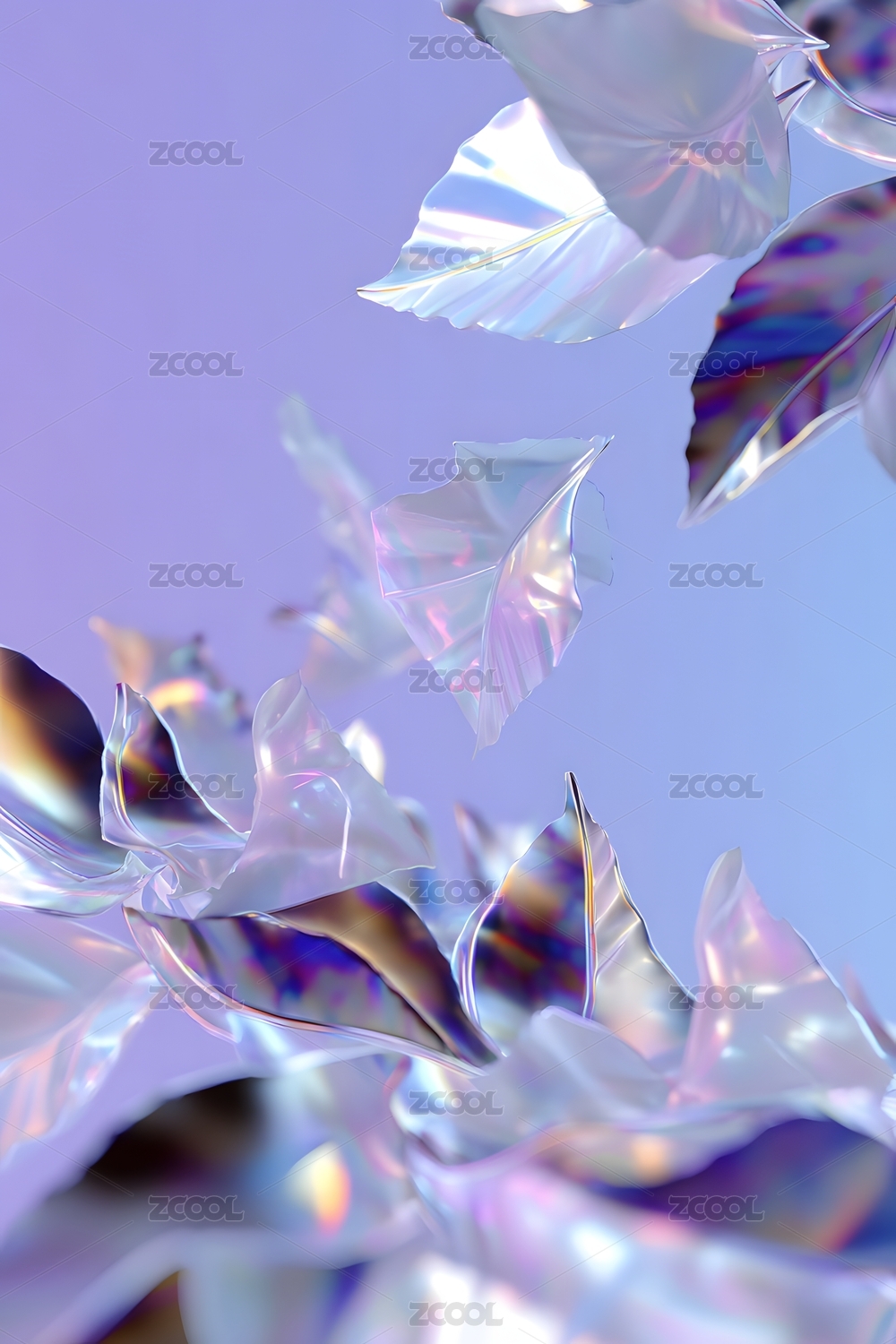 科幻抽象宇宙彩色透明晶体碰撞3D立体插画