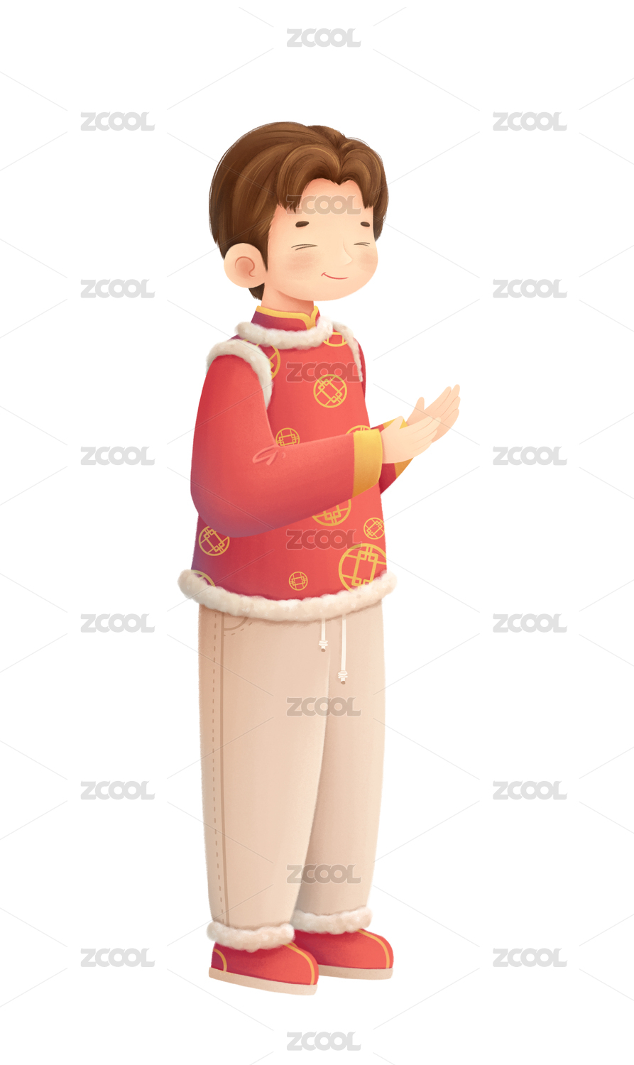 春节新年捂着耳朵点炮竹的男孩免抠人物元素