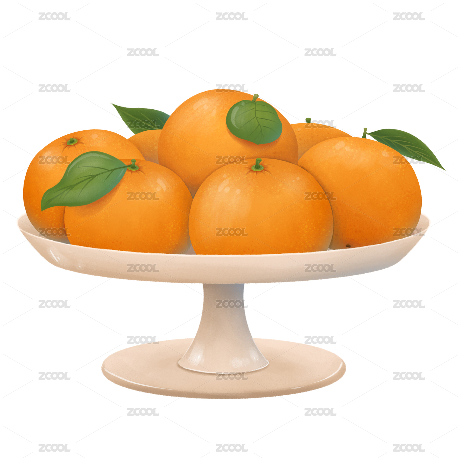 插画,卡通,装饰,橙子,水果,绿叶,新鲜,饱满,食品,自然