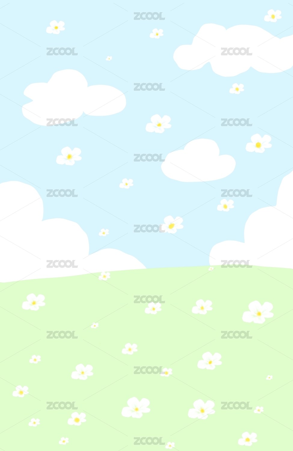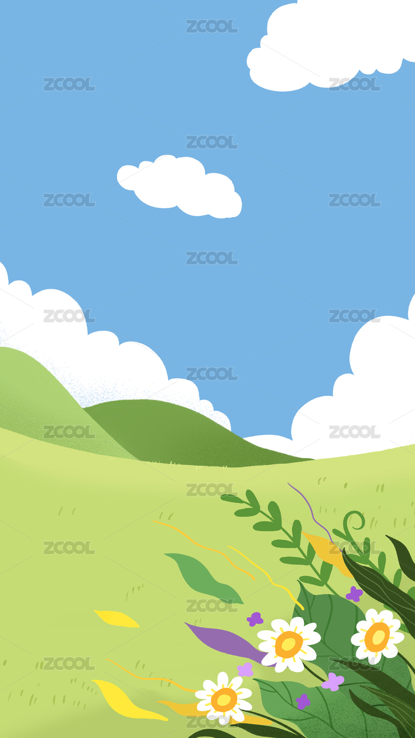 简约花朵草地插画背景
