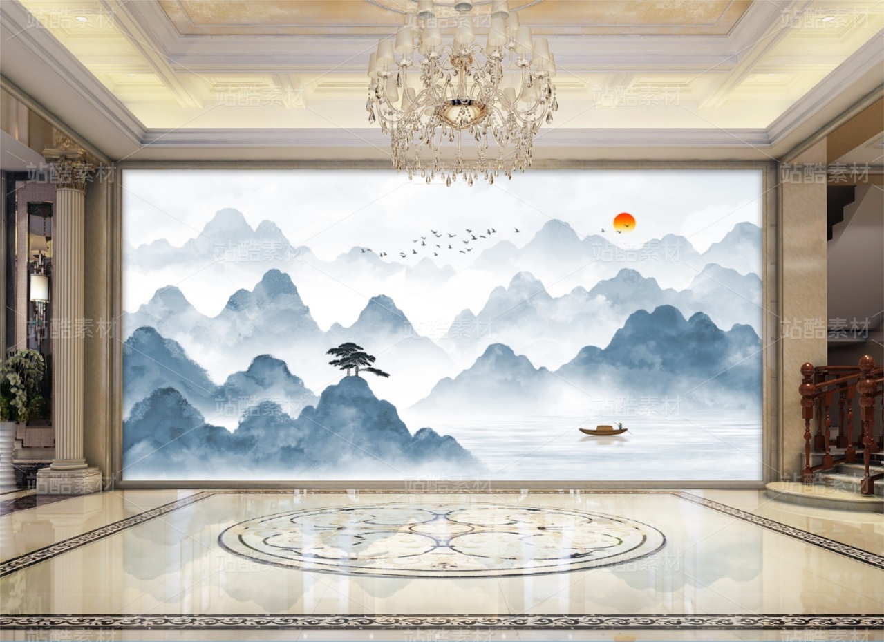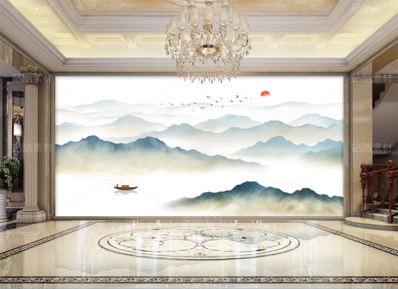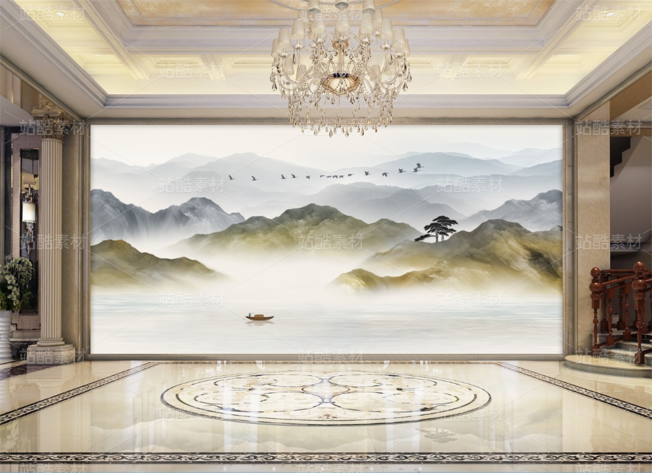抽象竹鸟装饰画 新中式竹子画 朦胧竹子 适用于家装,酒店,文化场所等,用于做:背景墙、隔断、移门,屏风、玄关。高清分层图可以用UV打印。