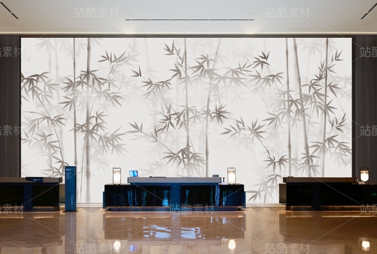 抽象竹鸟装饰画 新中式竹子画 朦胧竹子 适用于家装,酒店,文化场所等,用于做:背景墙、隔断、移门,屏风、玄关。高清分层图可以用UV打印。