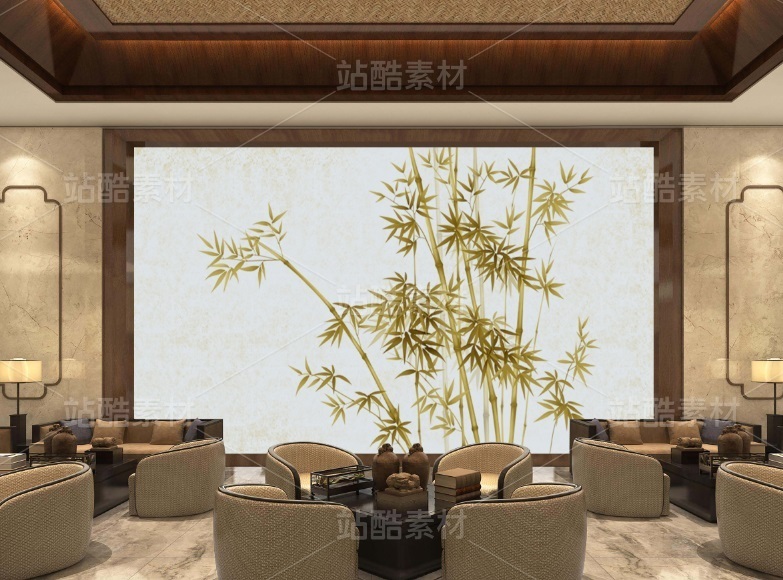 抽象竹鸟装饰画 新中式竹子画 朦胧竹子 适用于家装,酒店,文化场所等,用于做:背景墙、隔断、移门,屏风、玄关。高清分层图可以用UV打印。