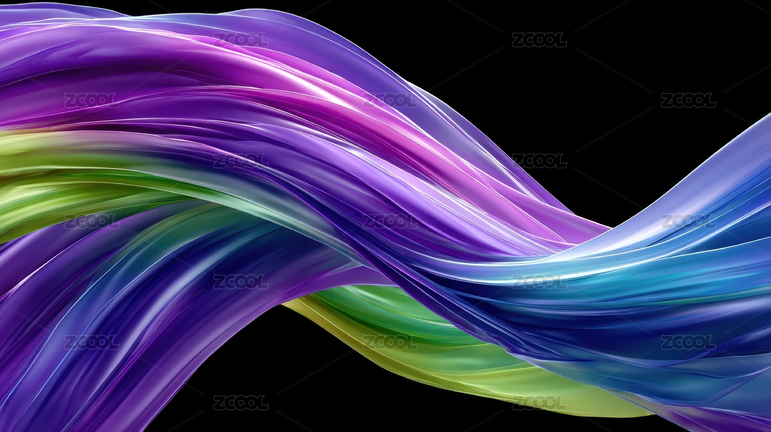 黑色背景 抽象创意彩色布料 彩带飘逸