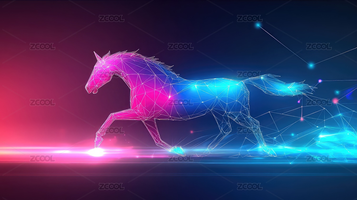 科技感十足的奔跑的马儿线条勾勒充满未来感