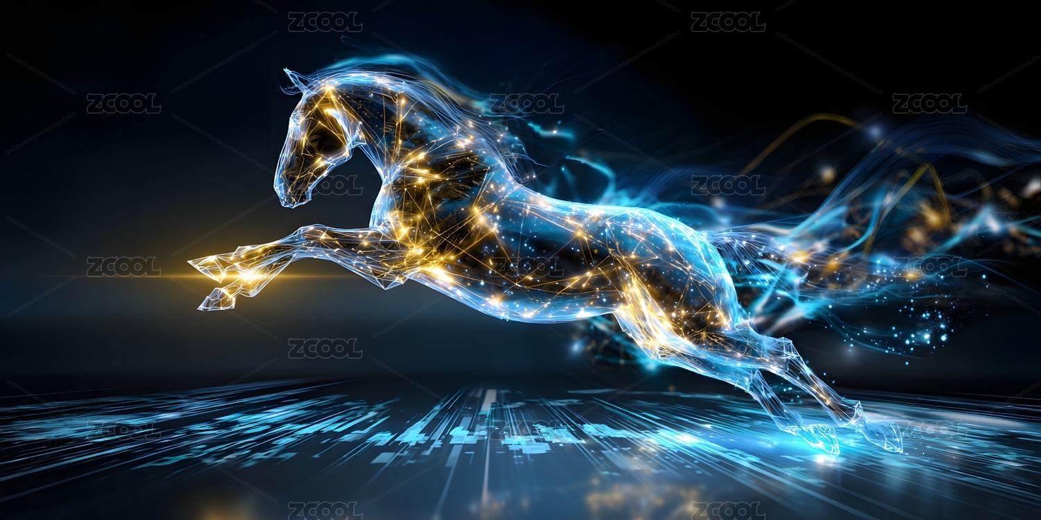 数字,骏马,夜景,科技,光芒,蓝色,奔跑,动态,城市,艺术