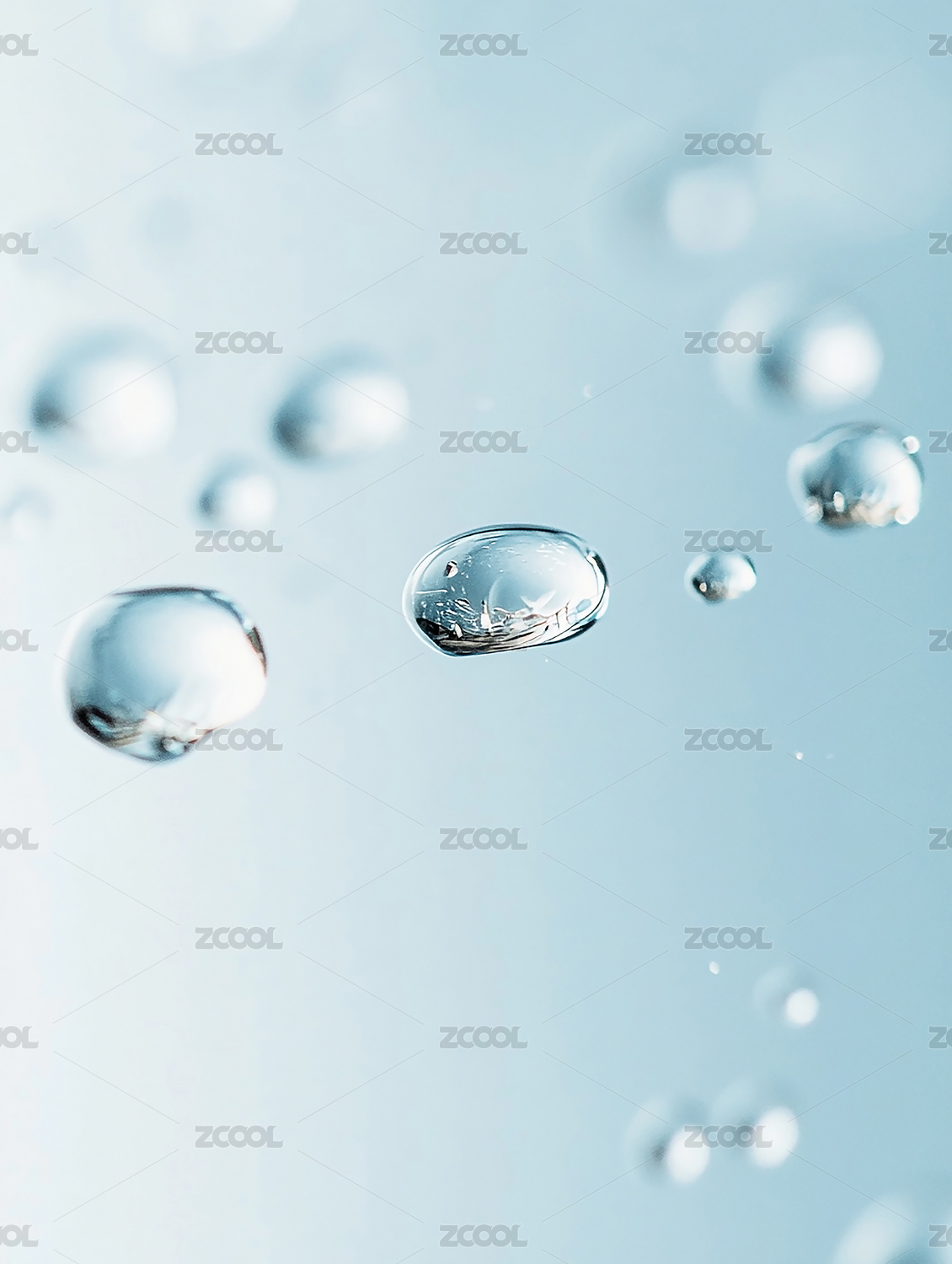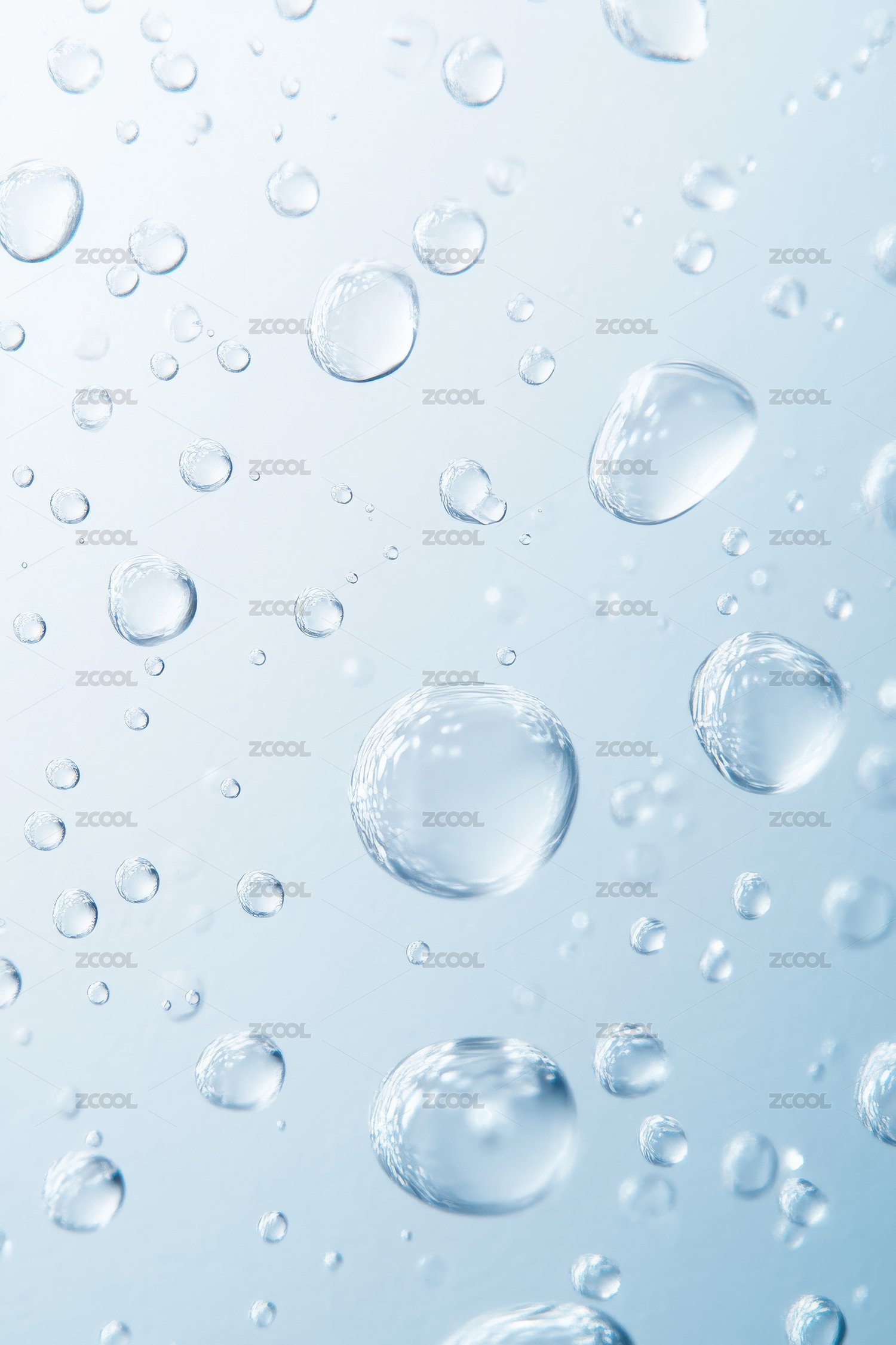 透明气泡悬浮在淡蓝色背景中