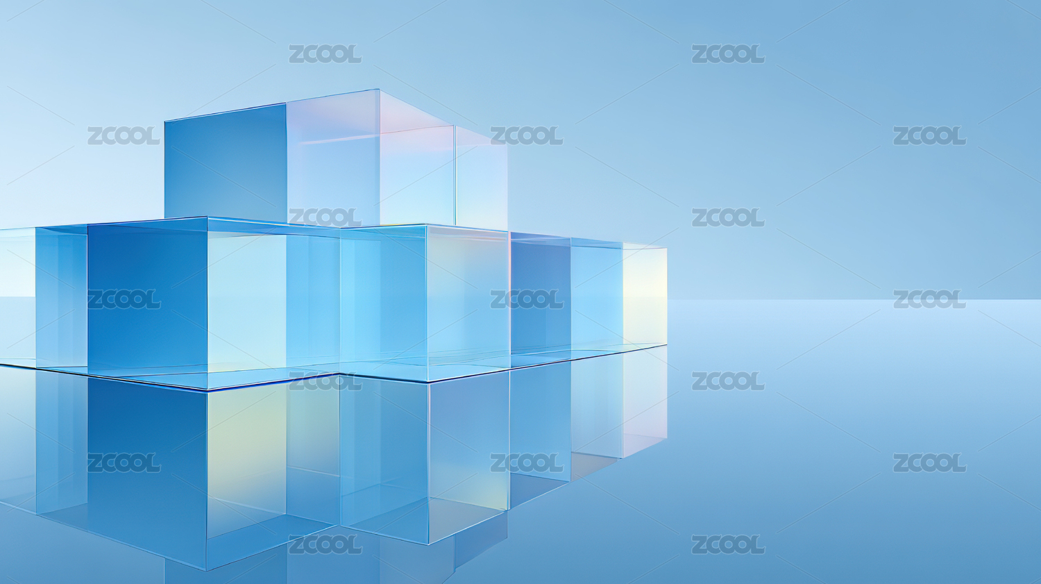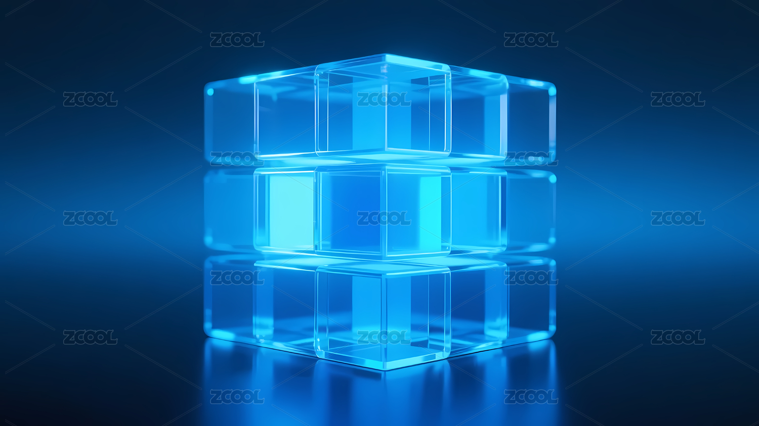 未来科技感蓝色水晶透明玻璃几何立方体背景