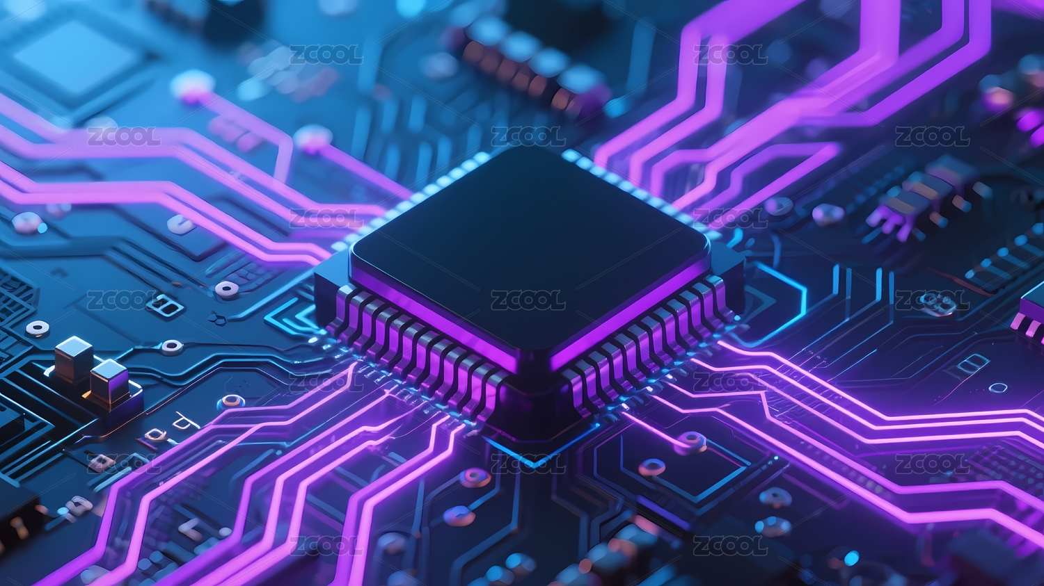 蓝色,科技,深色,未来,线条,芯片,发光,紫色,粉色,电路板