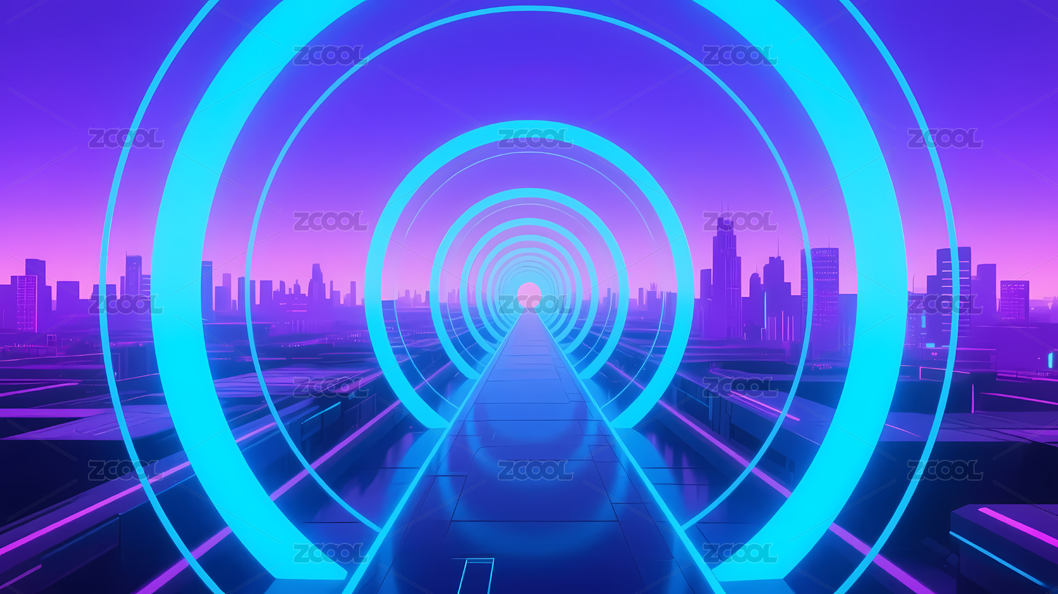 隧道与紫色渐变天空