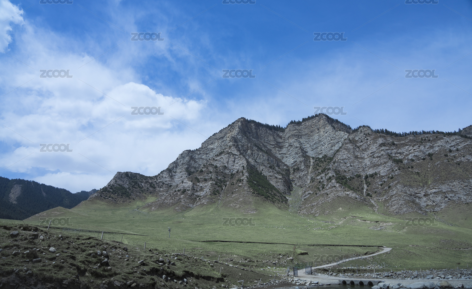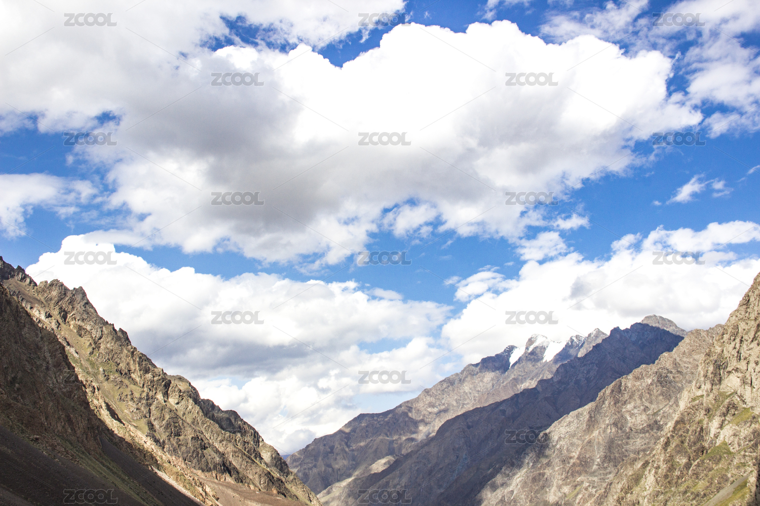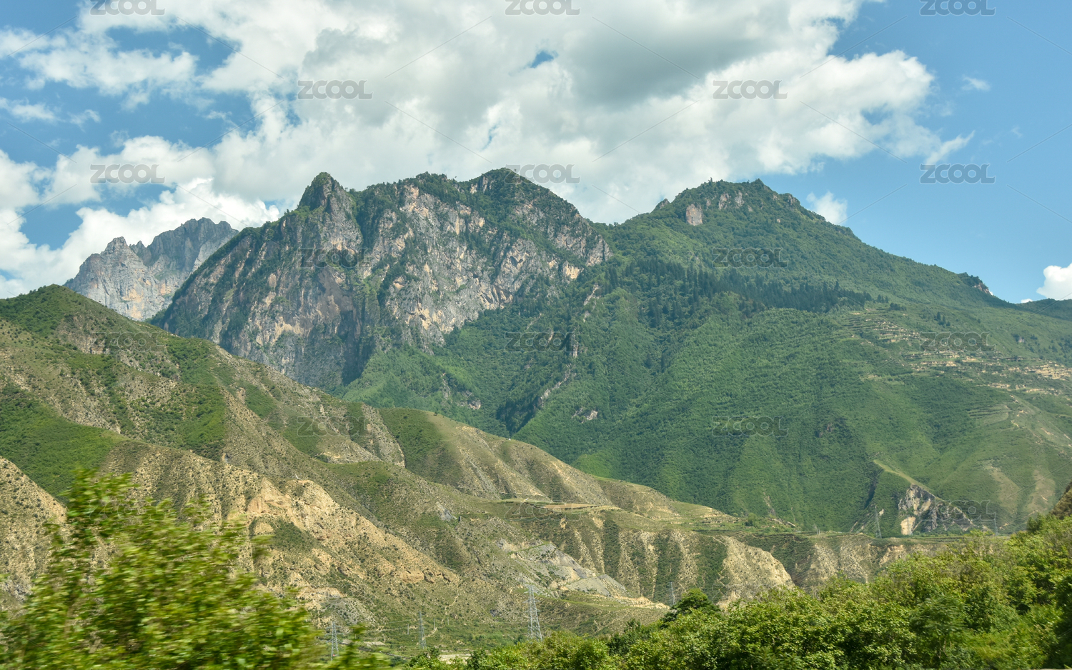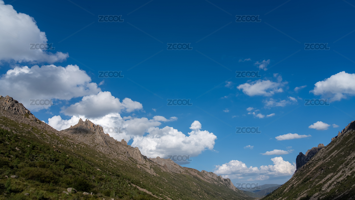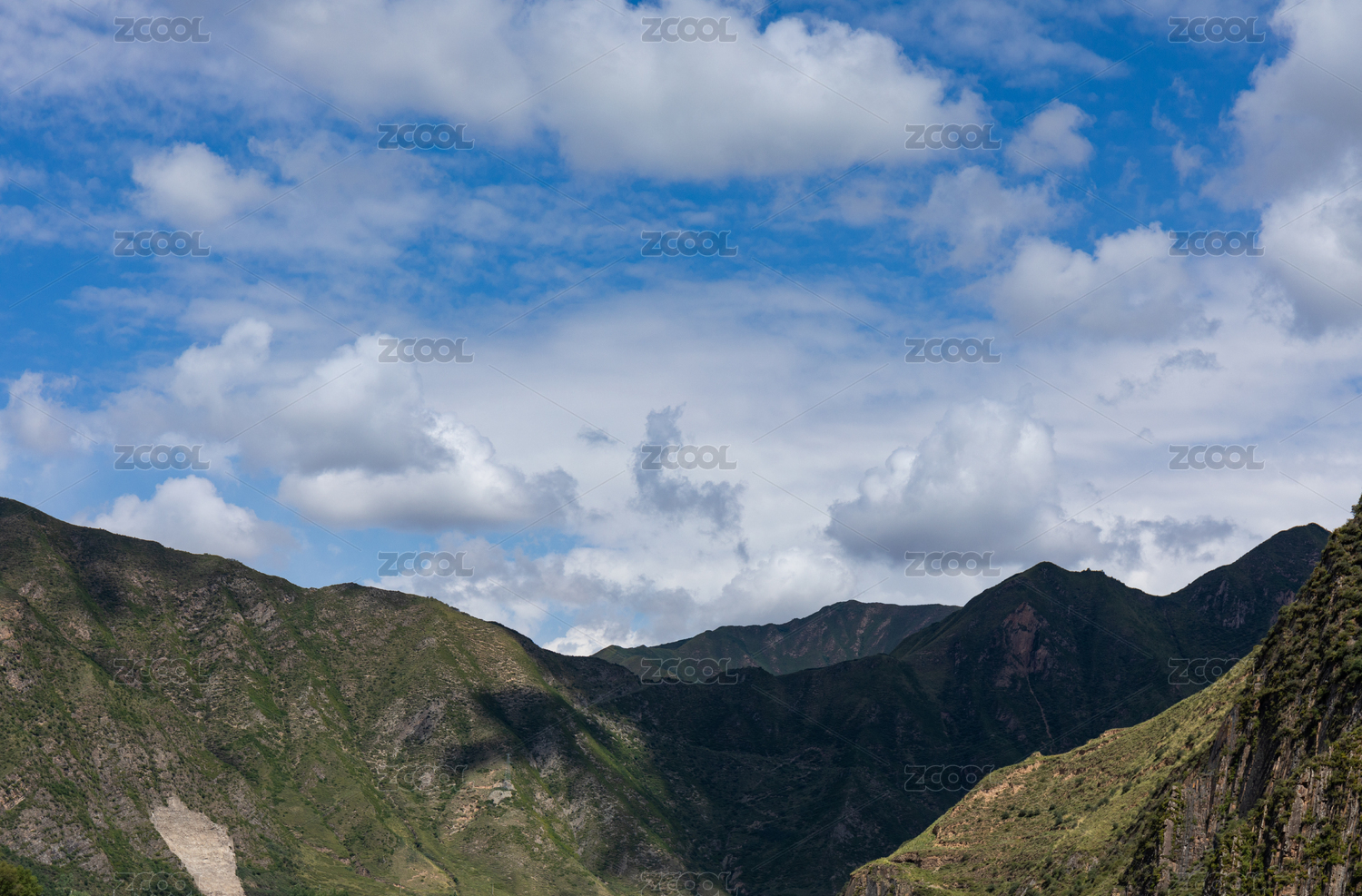 蓝天白云下的大山