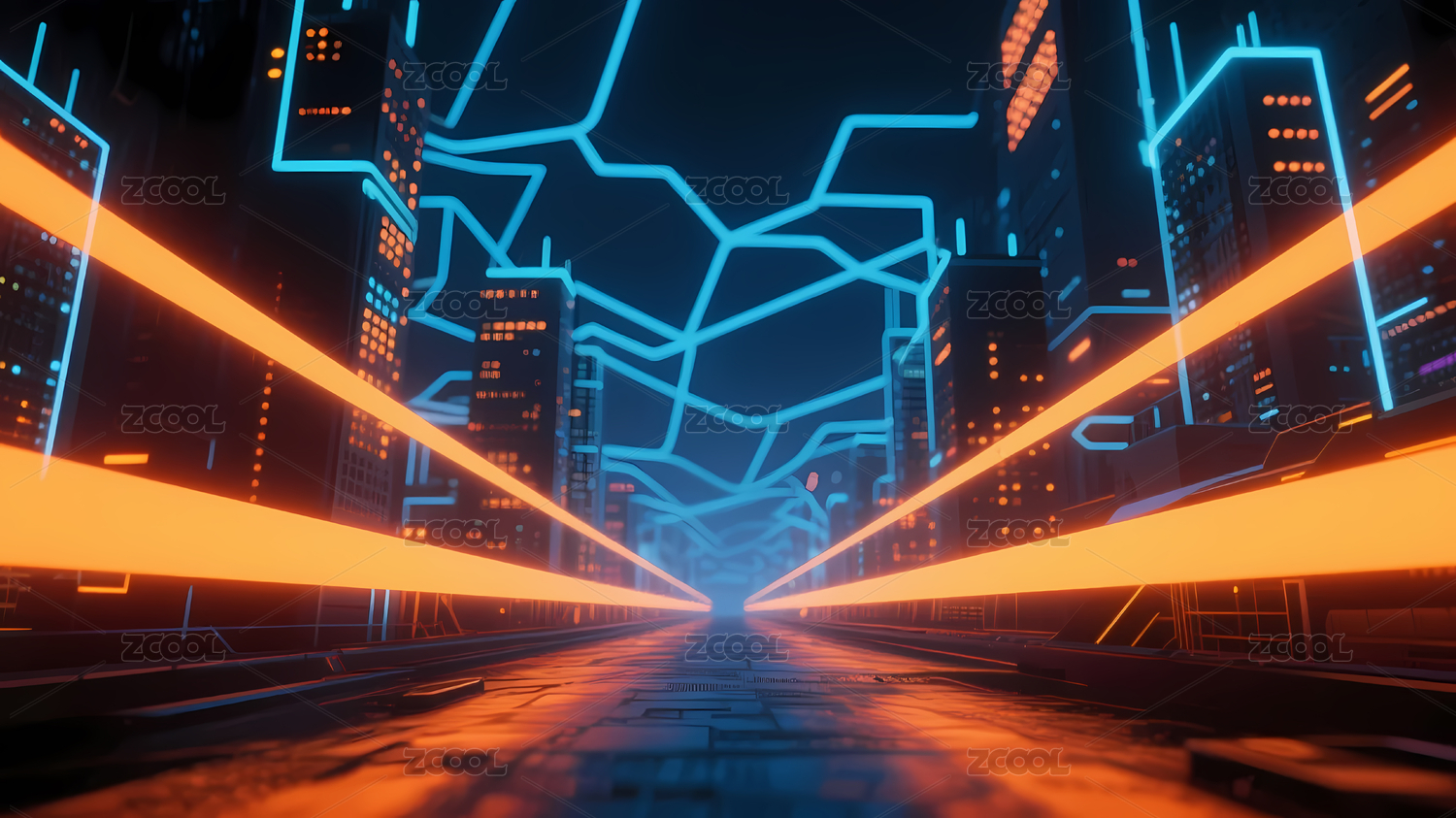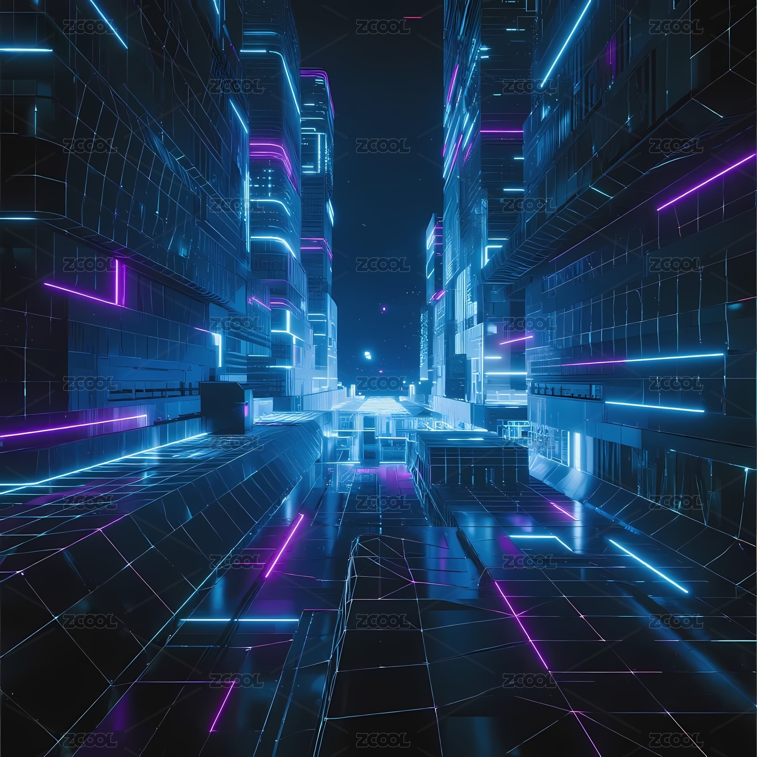 蓝色,科技,未来,神秘,夜景,灯光,建筑,霓虹,都市,街道