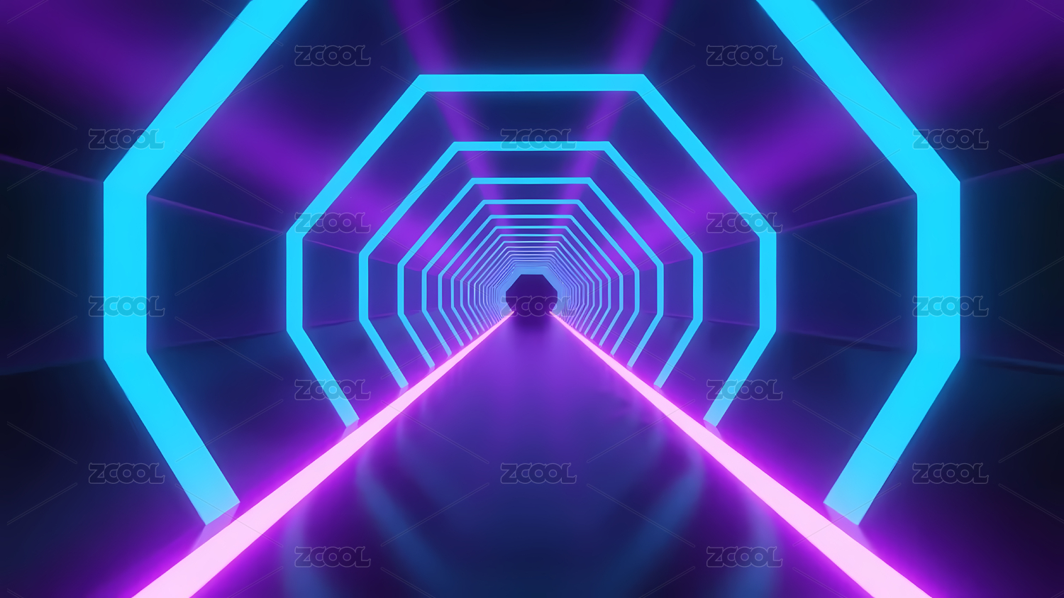 未来感霓虹八边形隧道