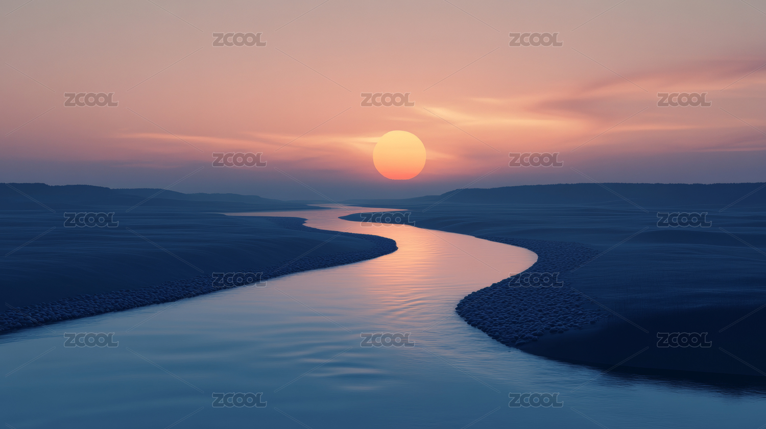 山谷河流夕阳