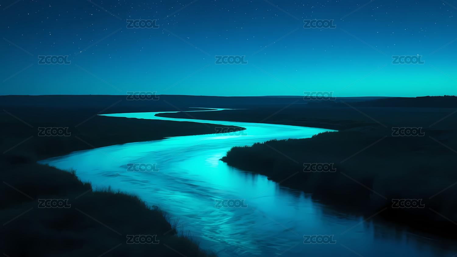 夜晚的蓝色河流