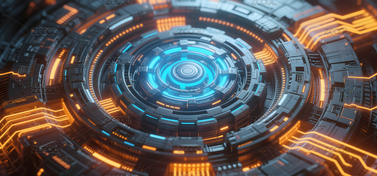 蓝橙发光圆形高科技界面