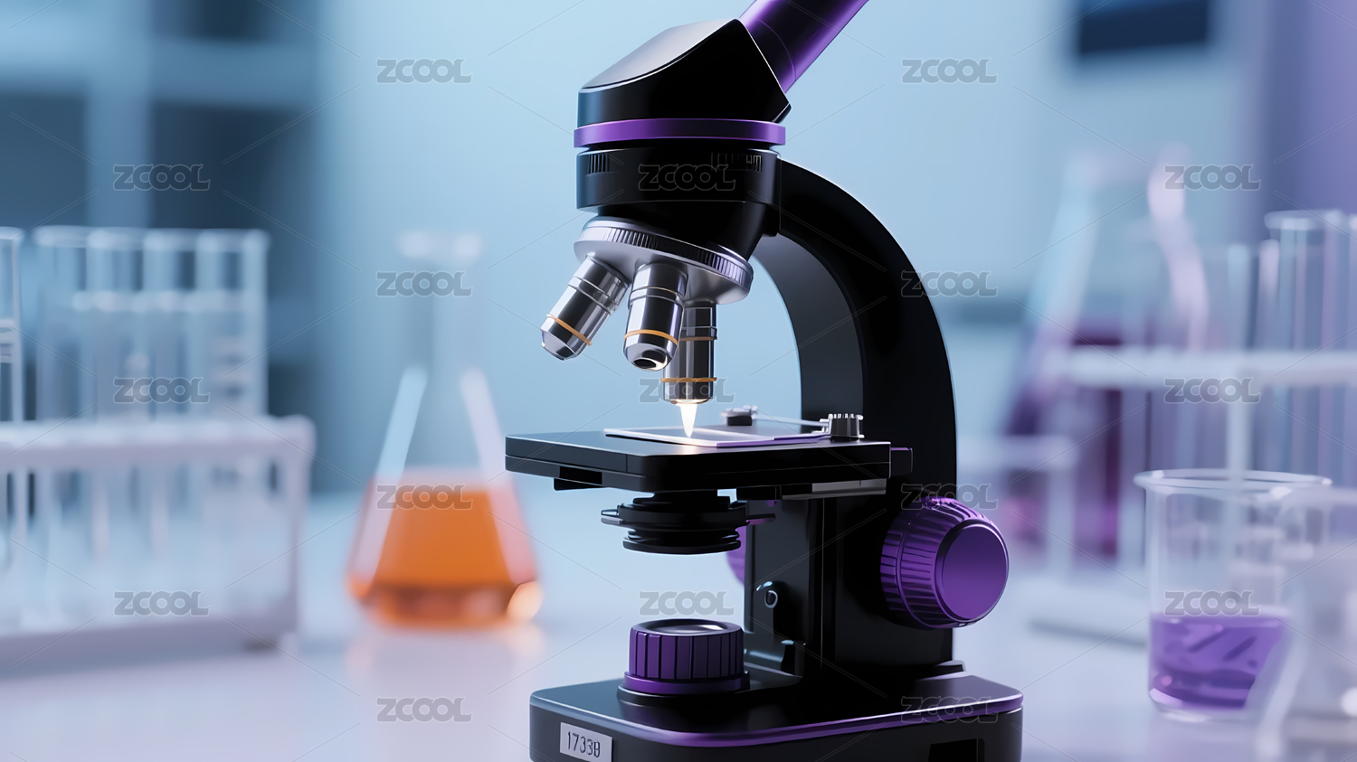 显微镜与玻璃瓶的科技实验室场景