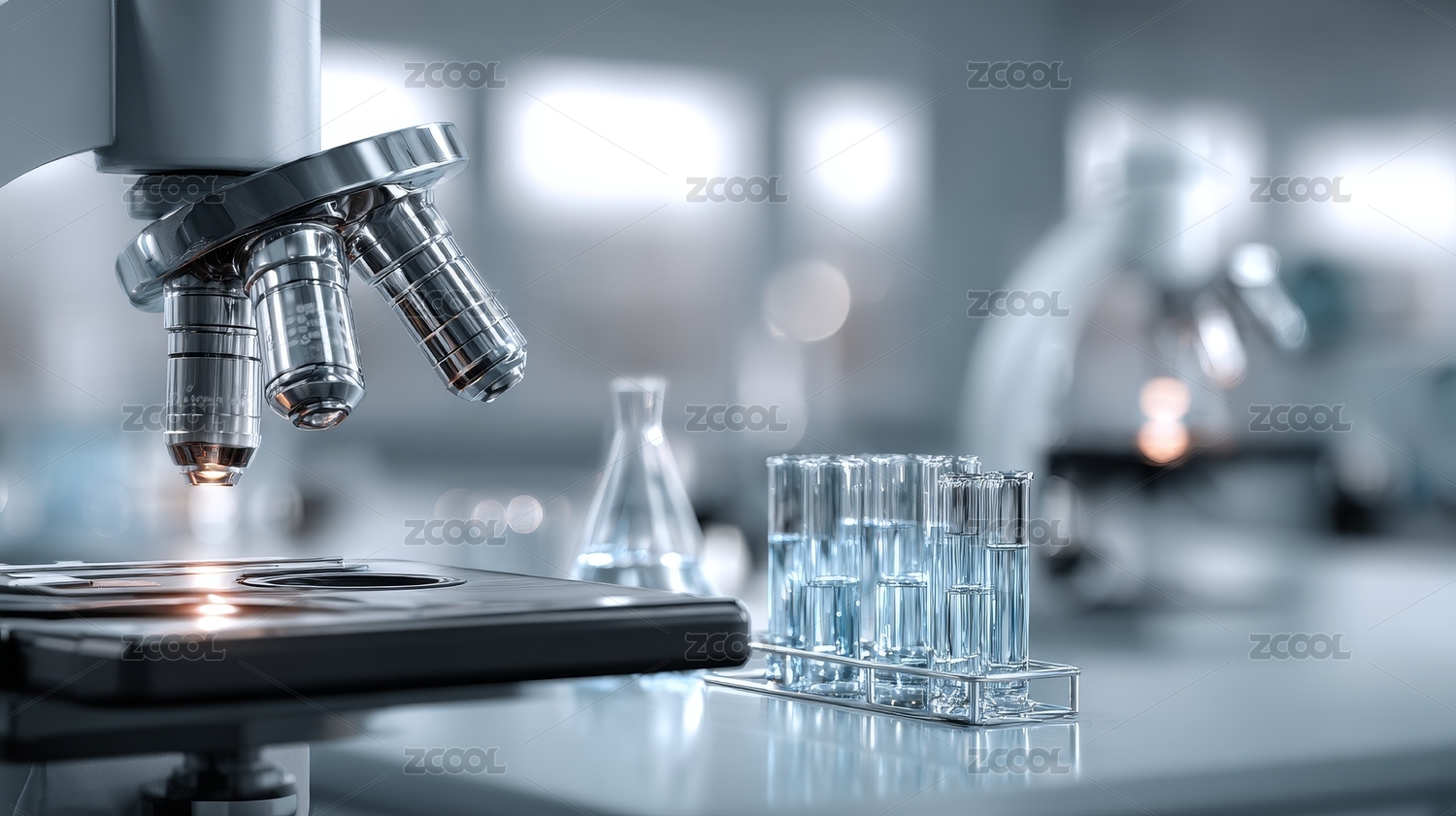 显微镜与锥形瓶的实验室场景