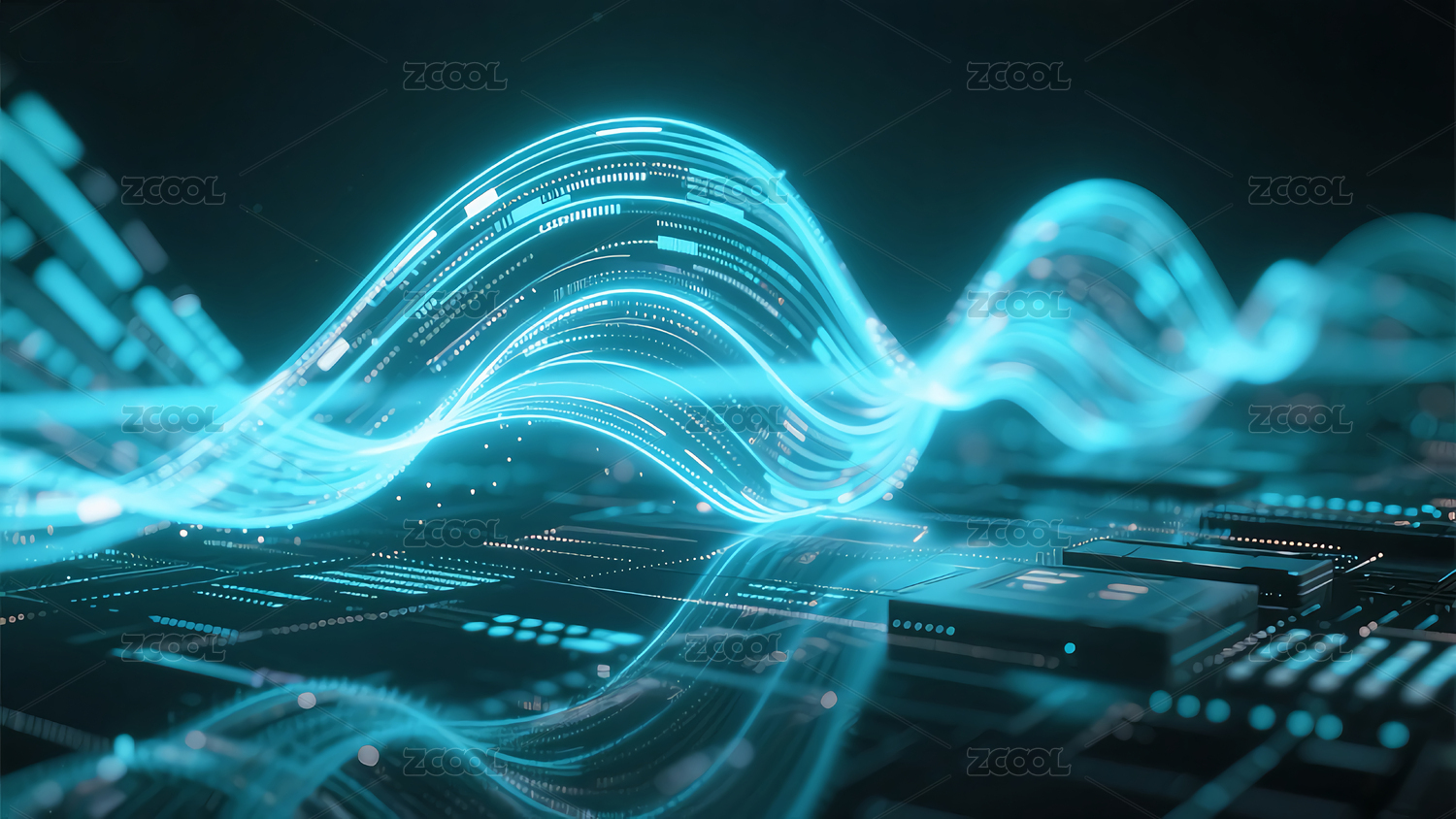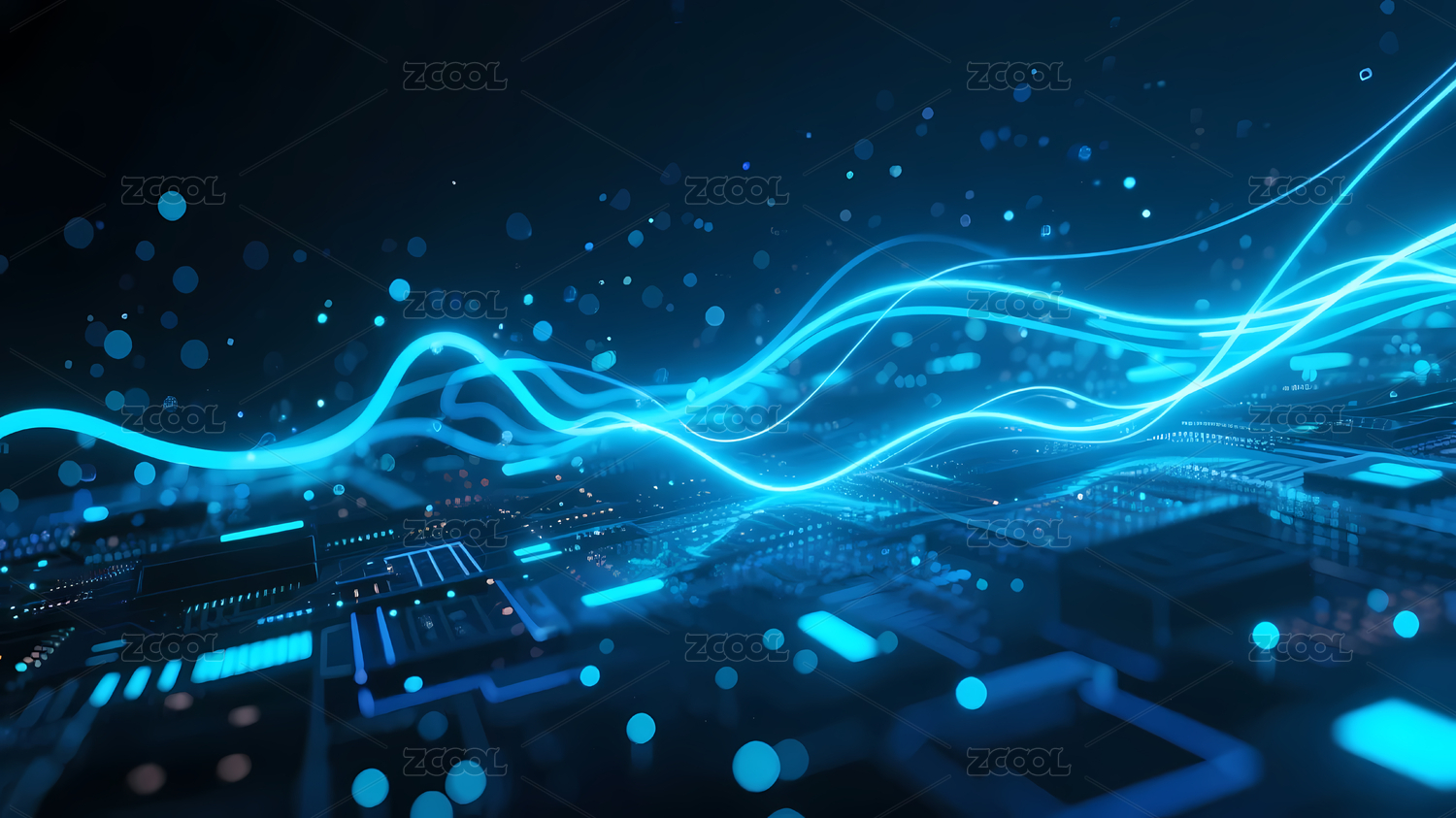 光点,波浪,蓝色,抽象,未来,科技,线条,深色,发光,环绕