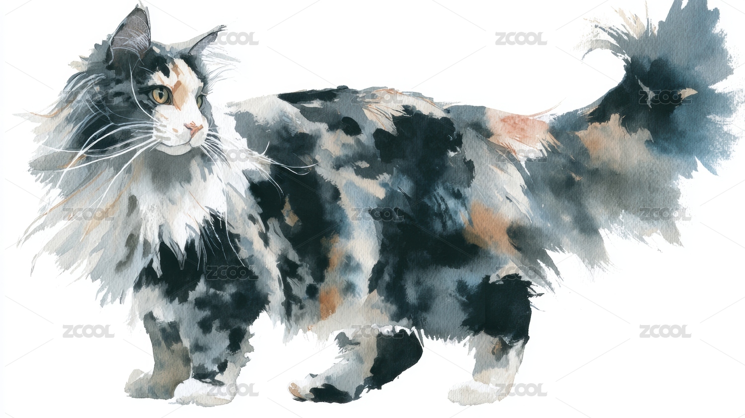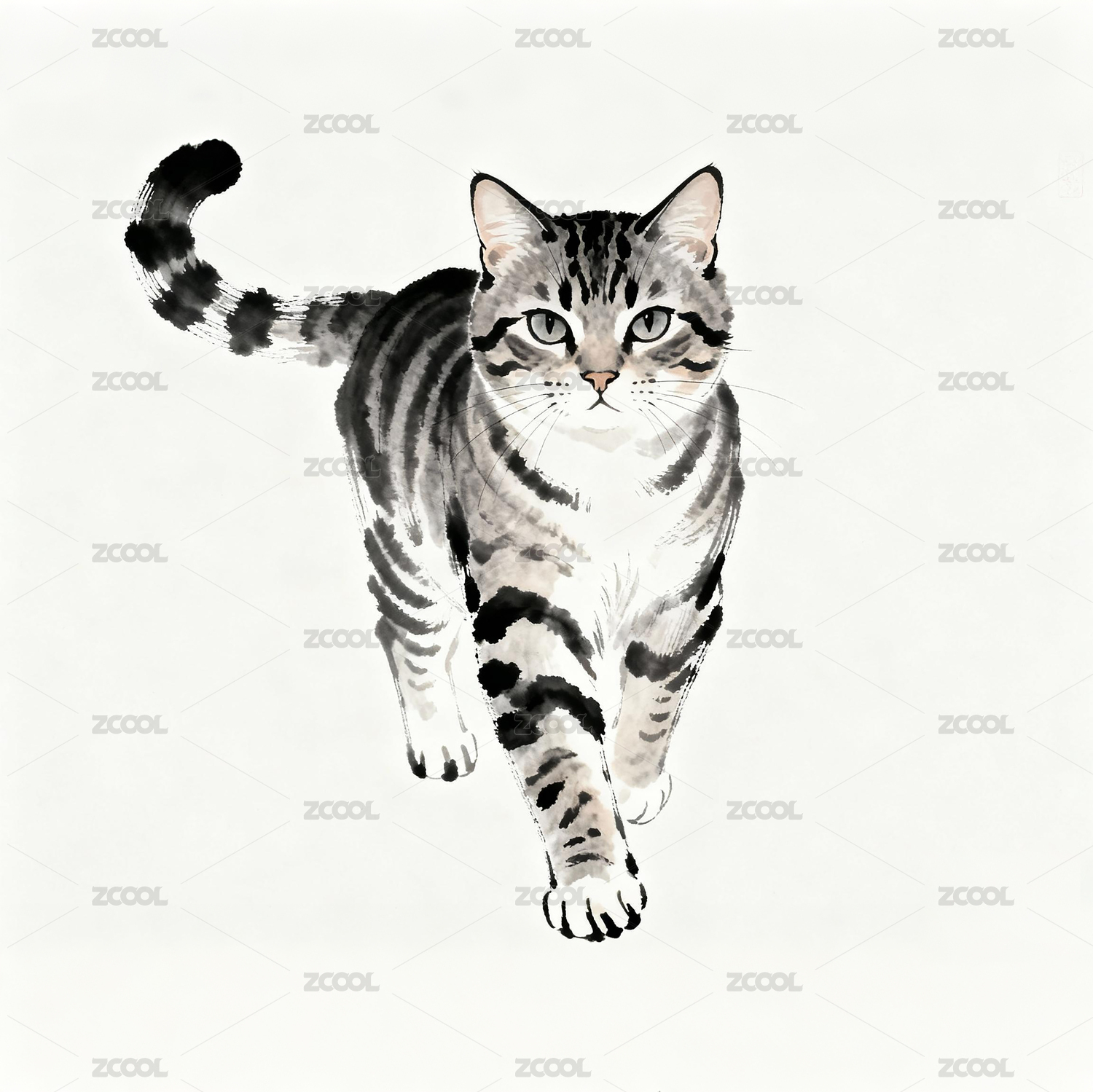 猫,狸花猫,狸花猫走路,水墨画,中国画,写意