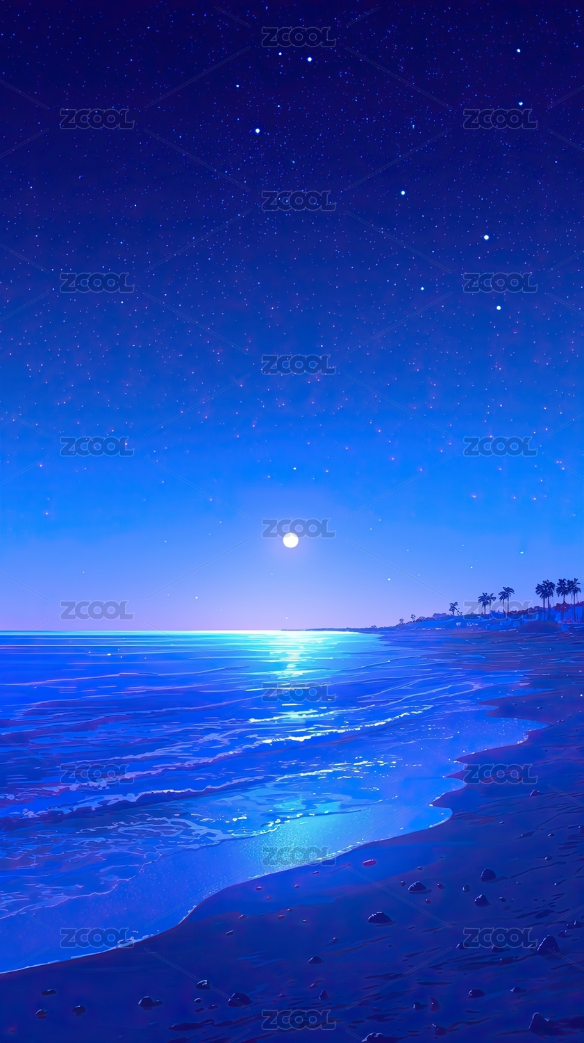 月夜海景梦幻风光图