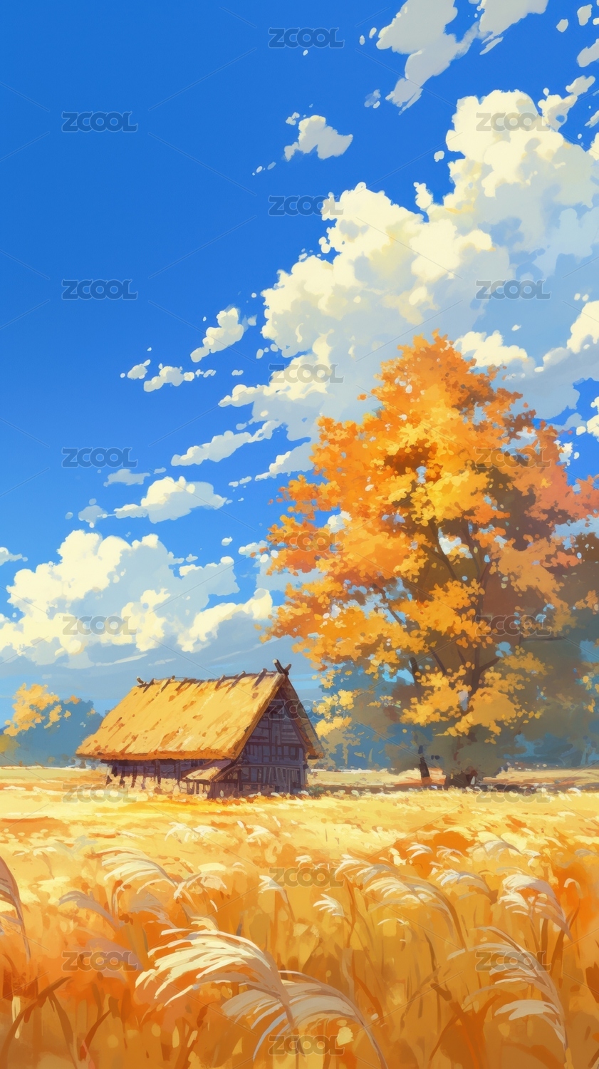 插画,卡通,自然,清新,宁静,环境,风景,小径,蓝天,白云