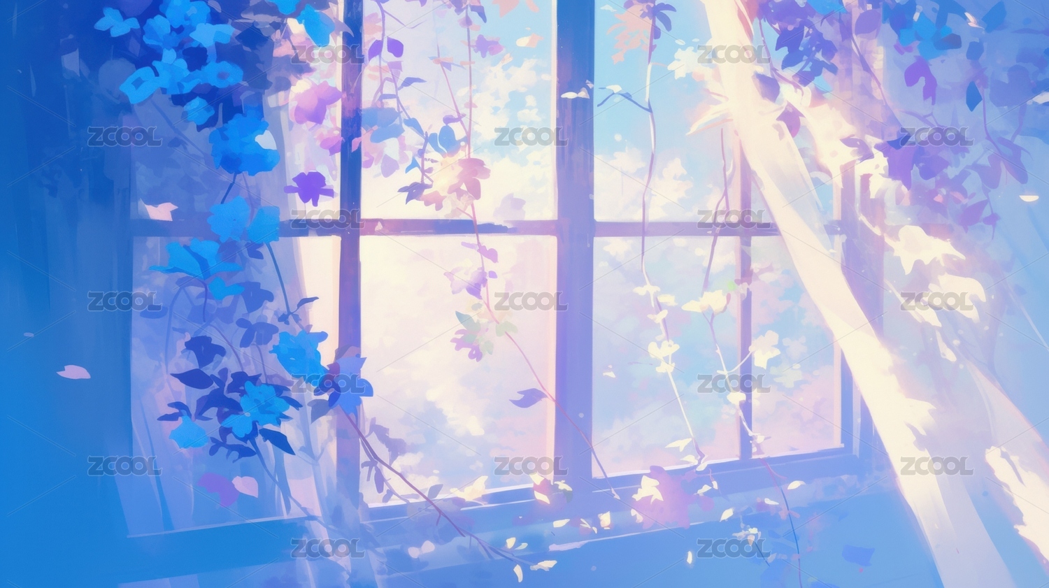 插画,卡通,风景,自然,清新,植物,光影,静谧,艺术,梦幻