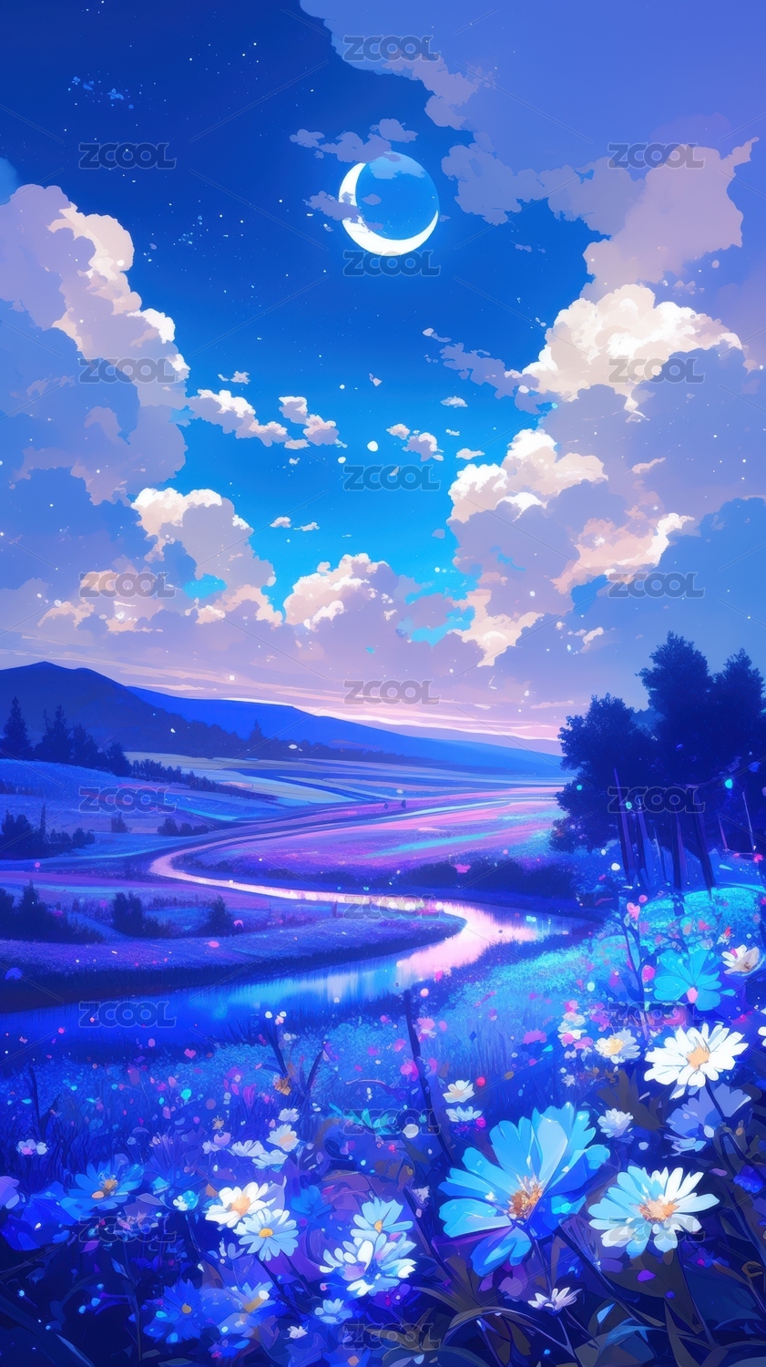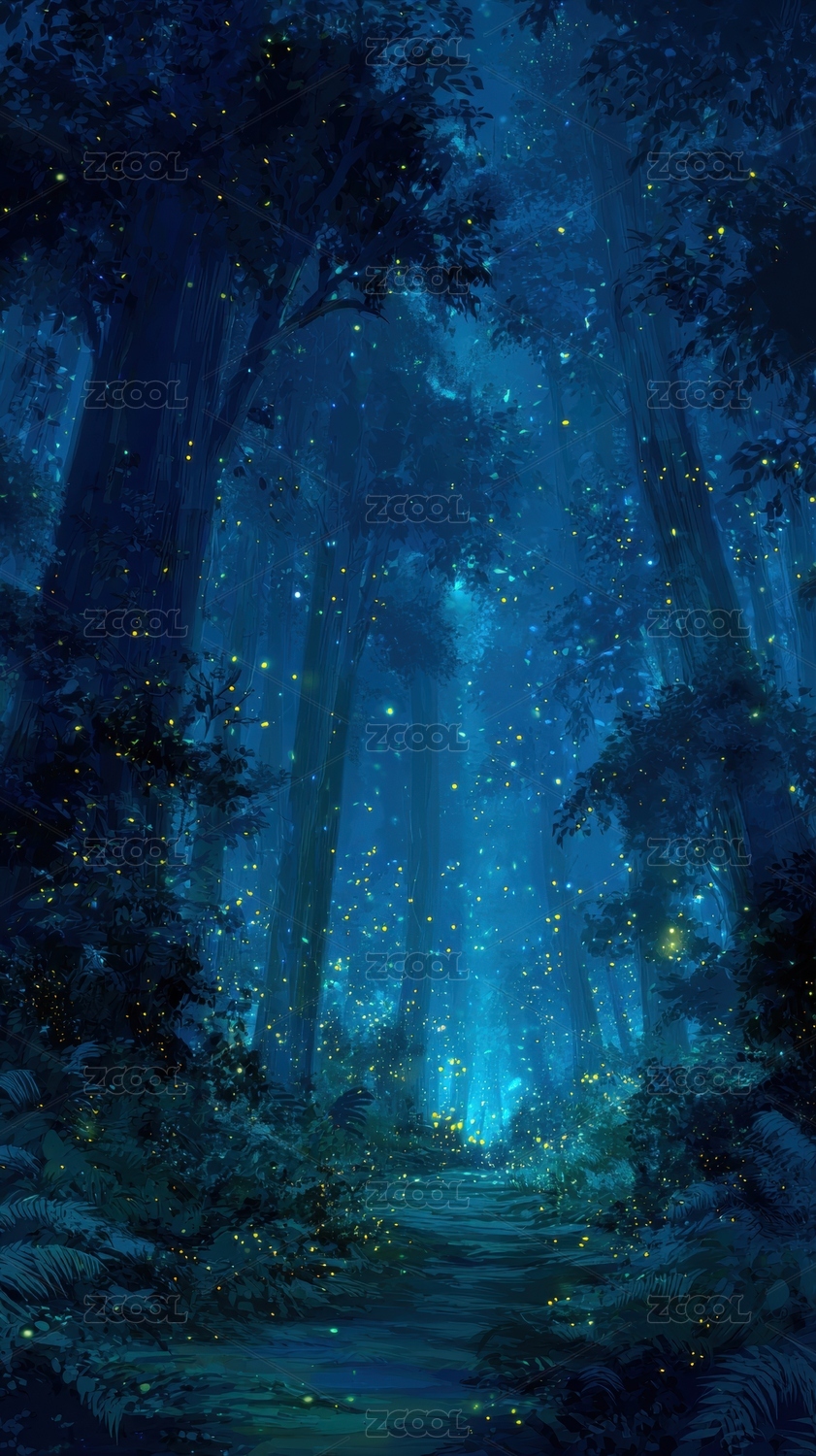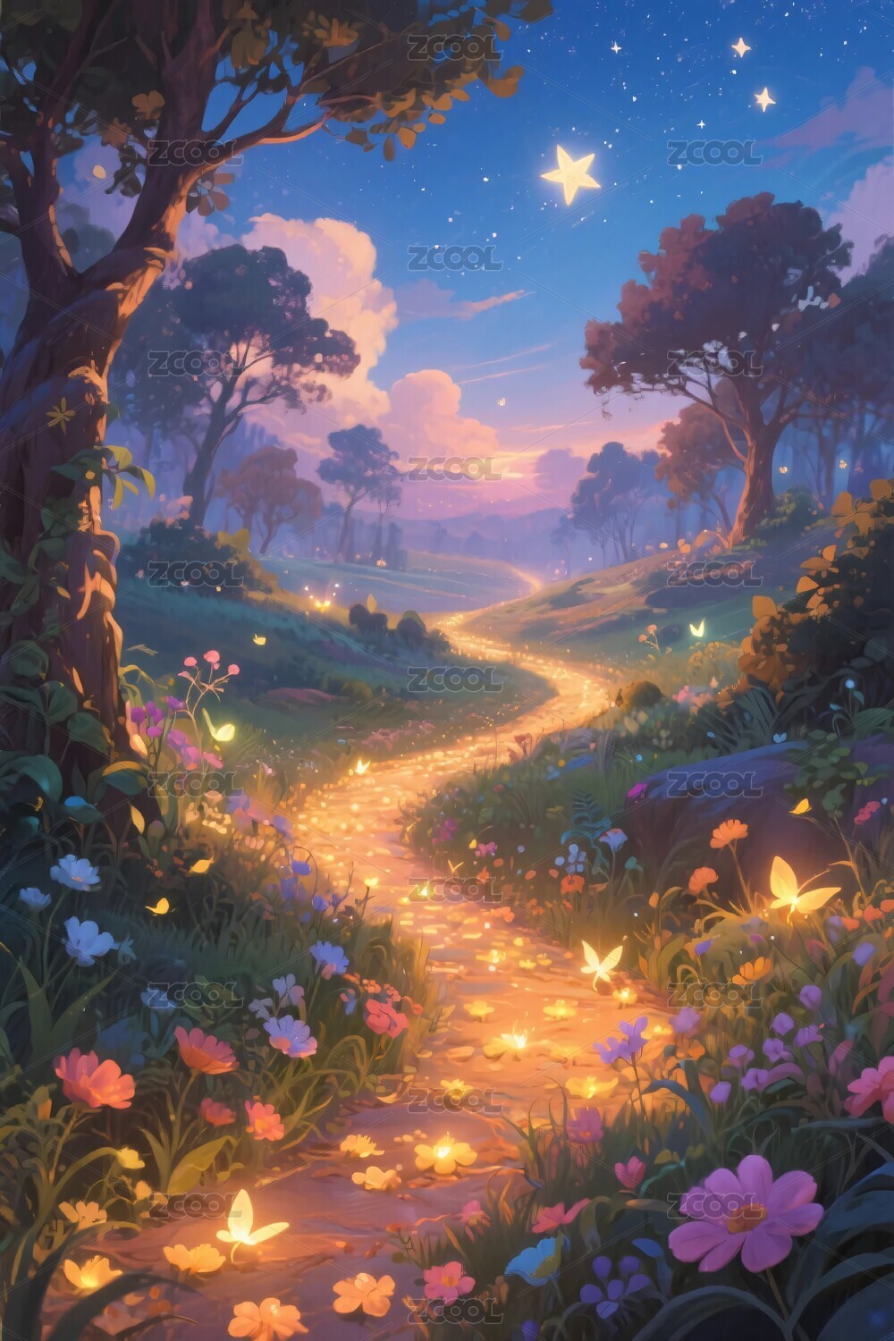 插画,卡通,风景,自然,幽静,梦幻,光影,环境,树木,光线