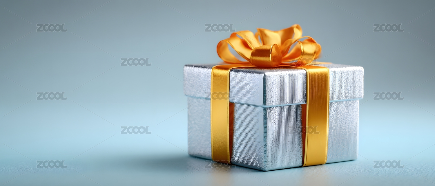 银色礼盒金色蝴蝶结淡雅背景