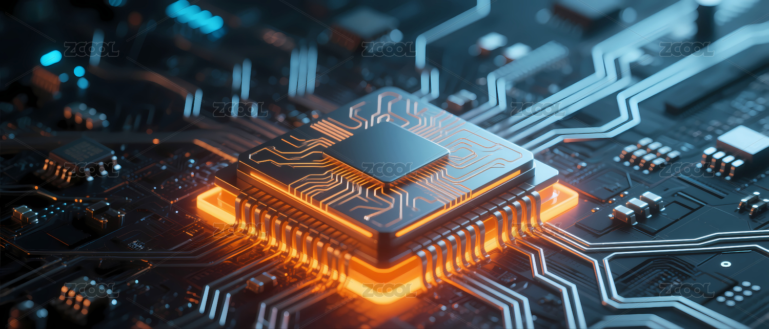 主视觉,商业,壁纸,橙色,芯片,电子,电路,主板,元件,发光