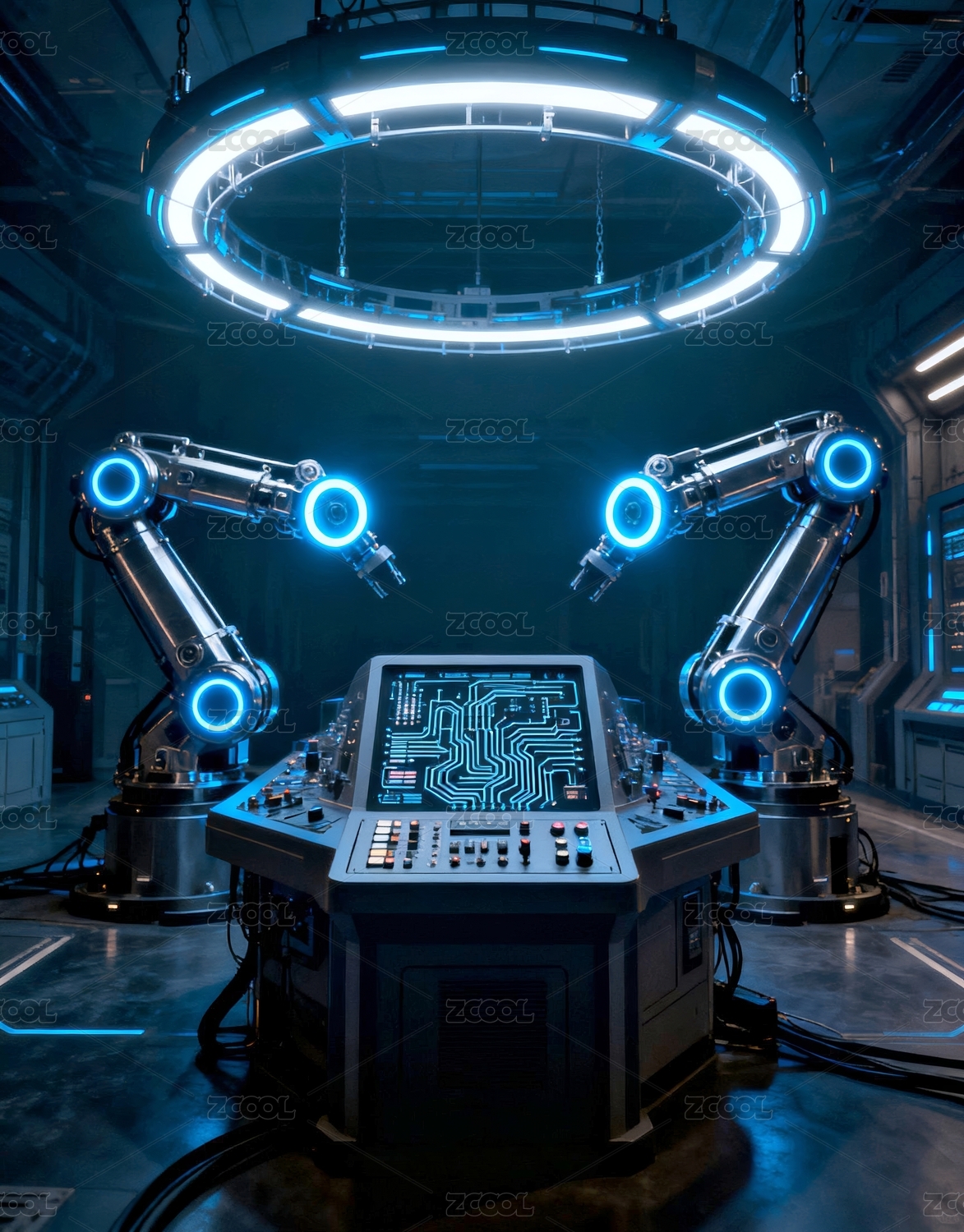 机械臂科幻感舱室场景