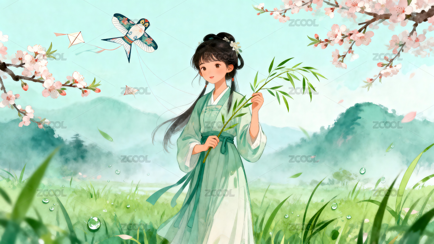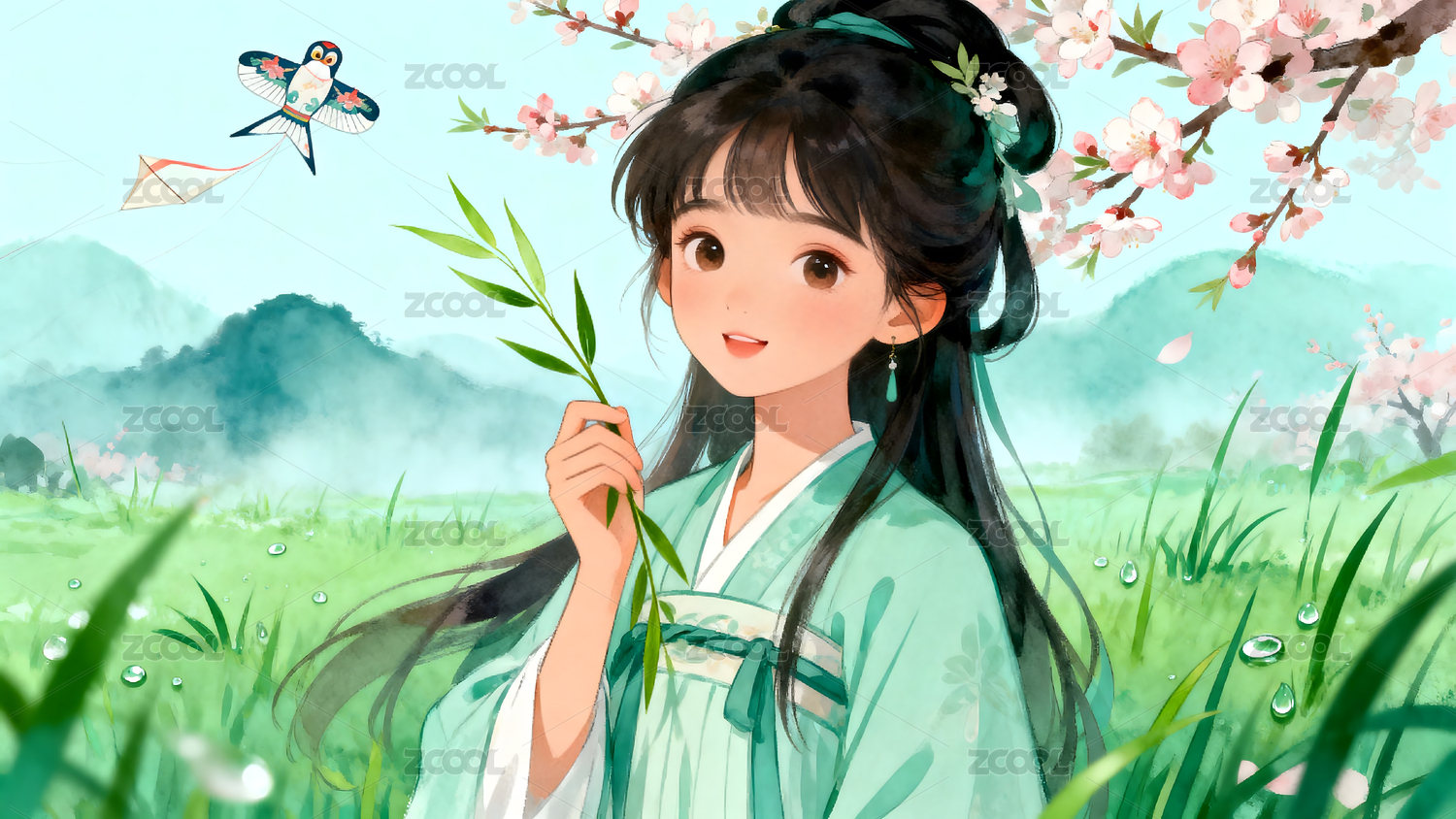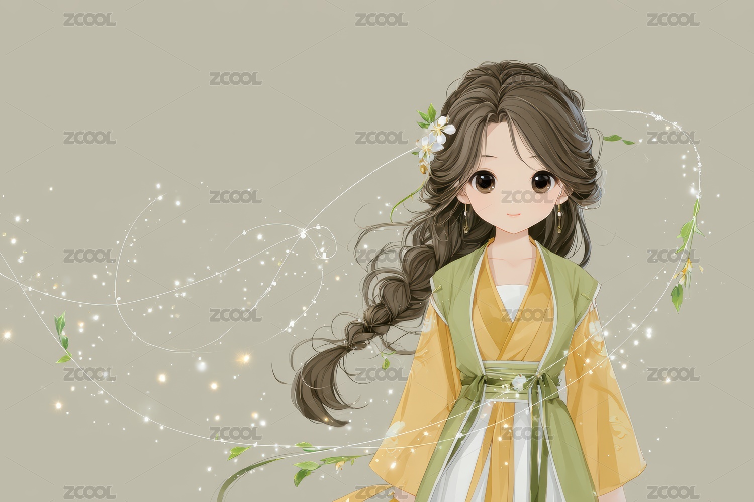 插画,卡通,漫画,中国风,少女,服饰,背景,艺术,梦幻,长发