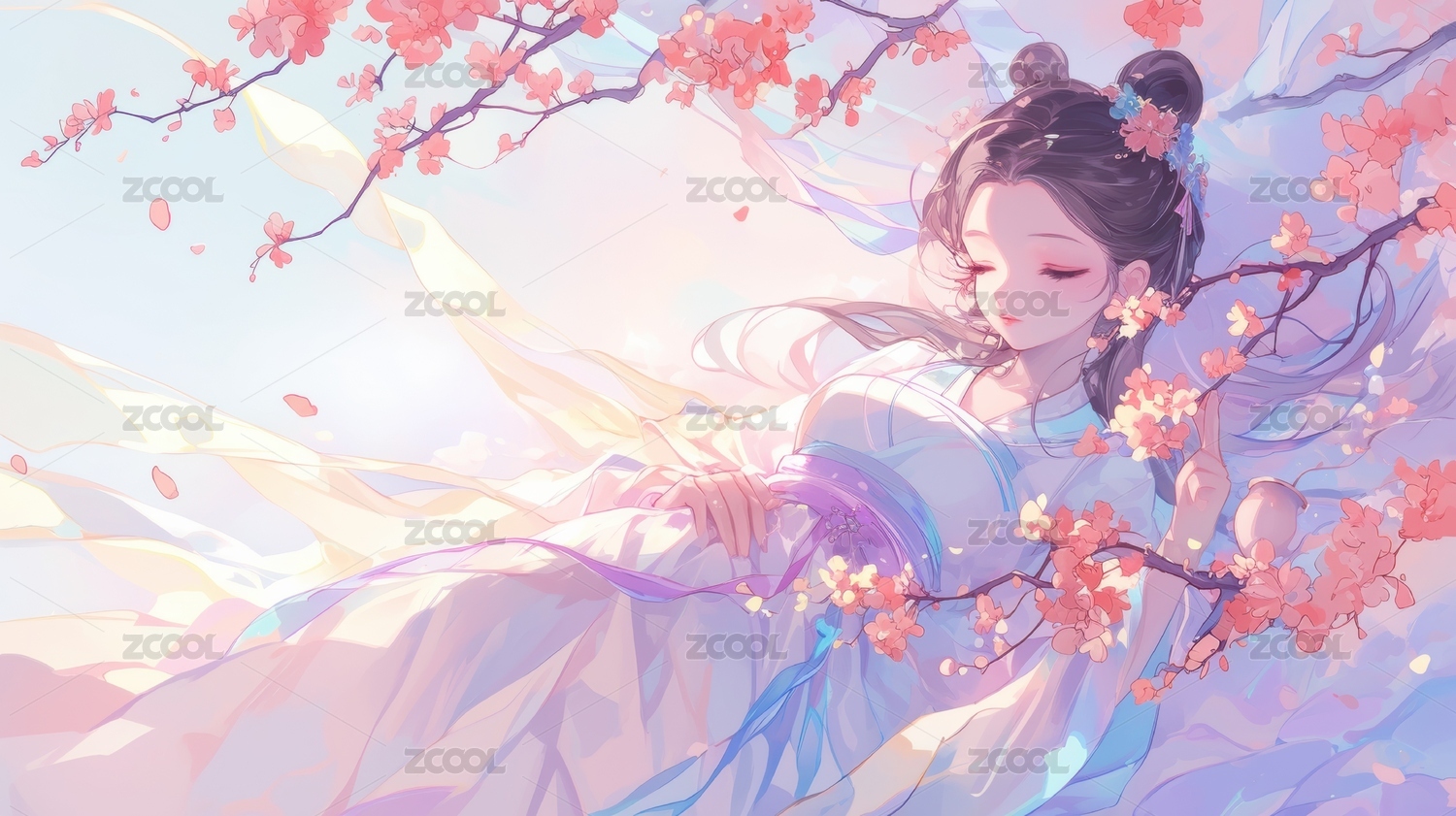 樱花树下轻纱少女