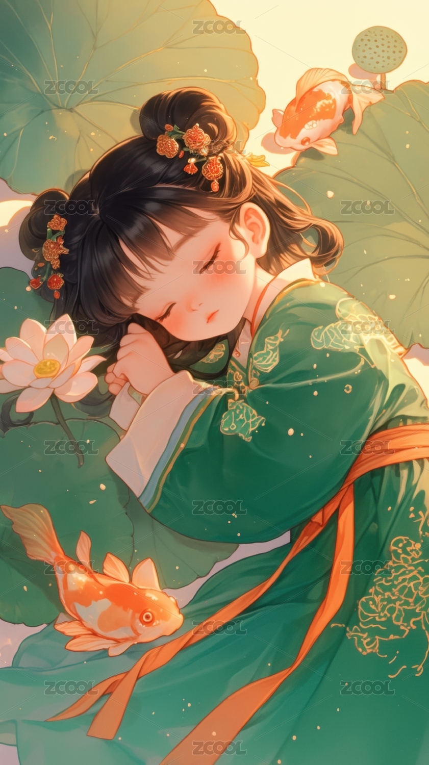插画,卡通,漫画,中国风,少女,传统,服饰,背景,光线,艺术