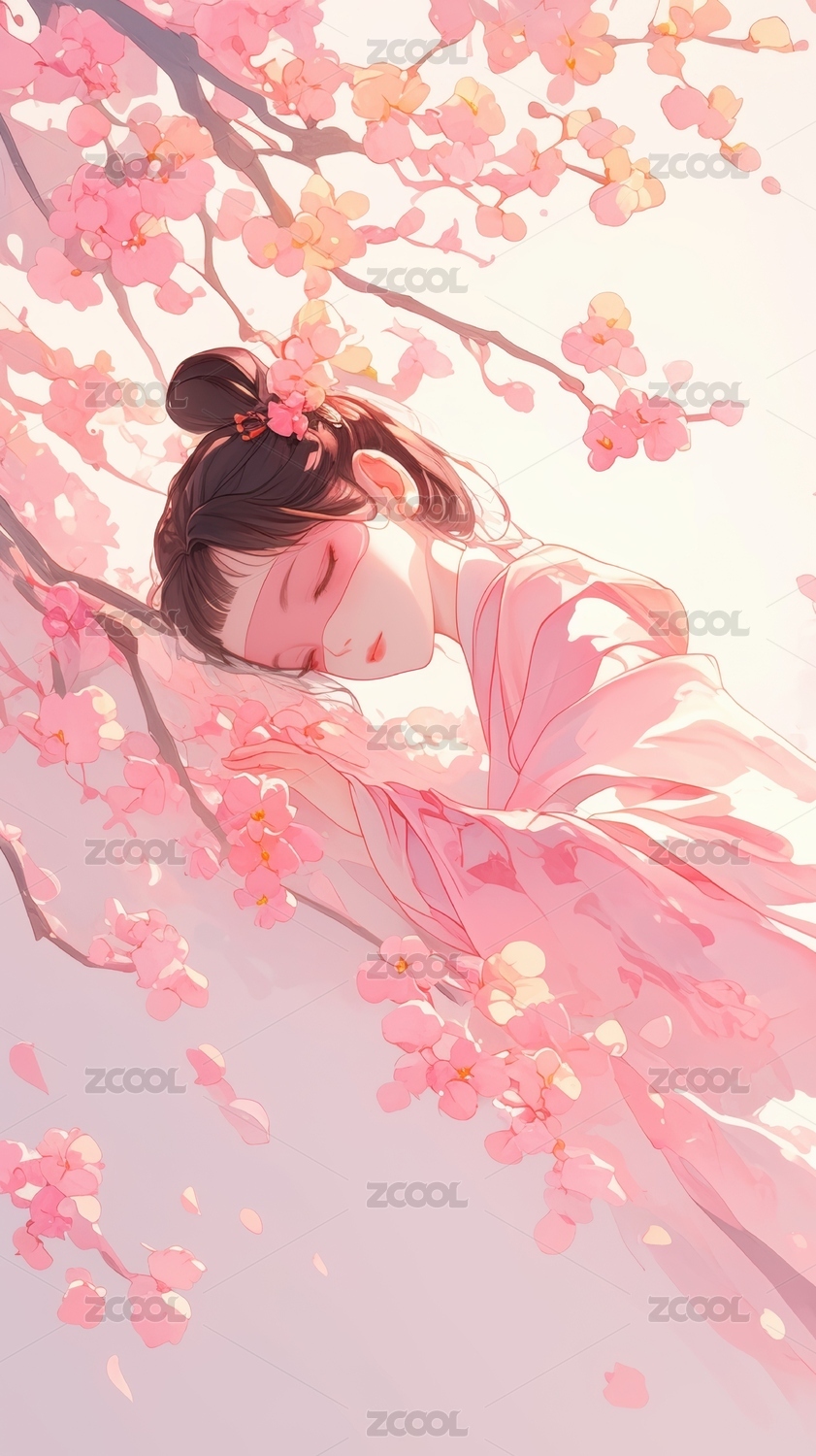 春天唯美梦幻樱花女孩插画