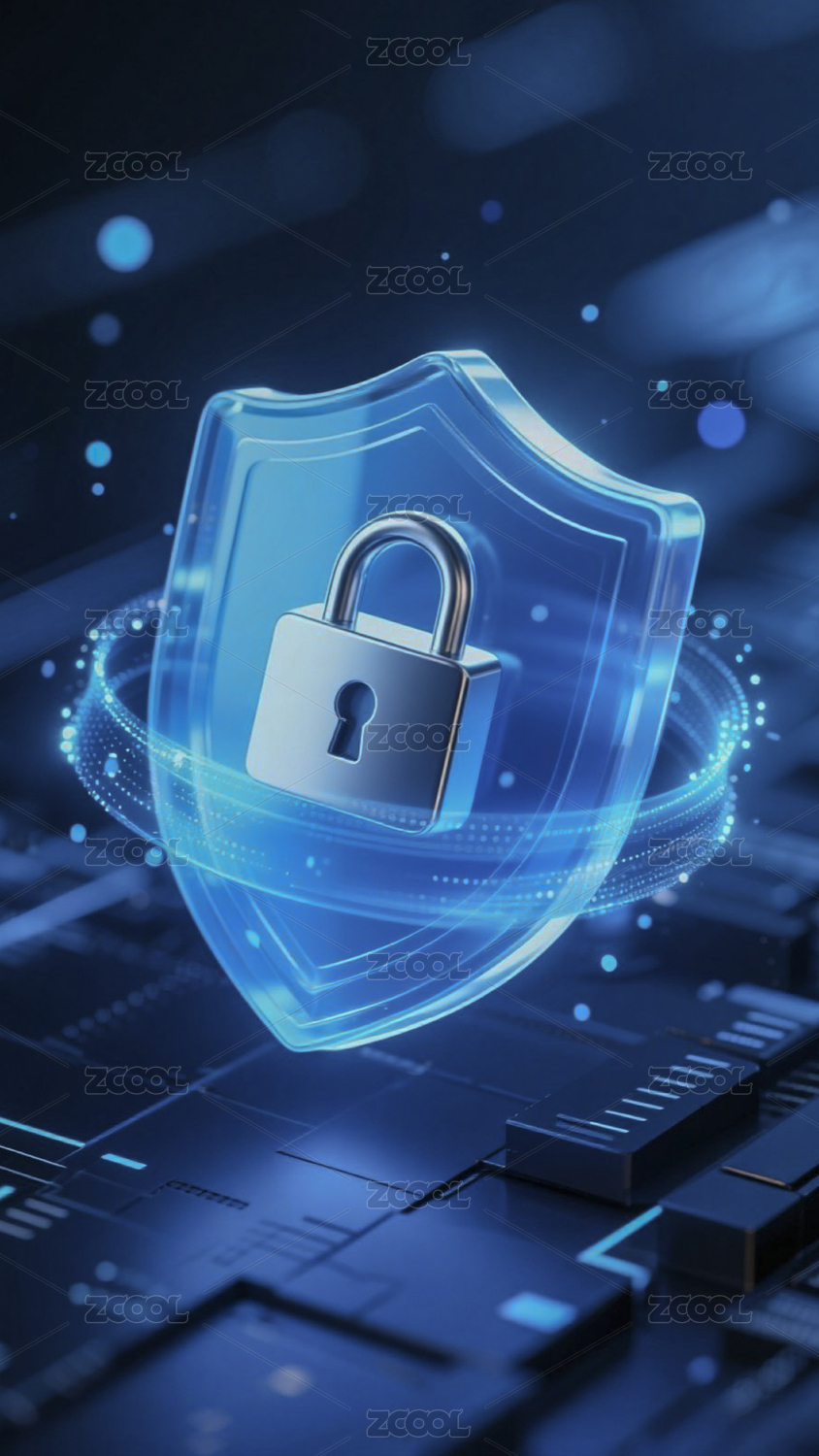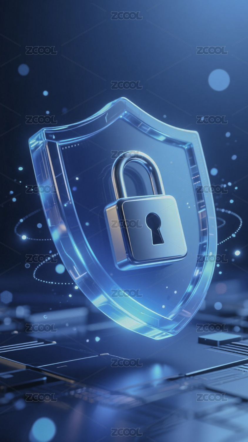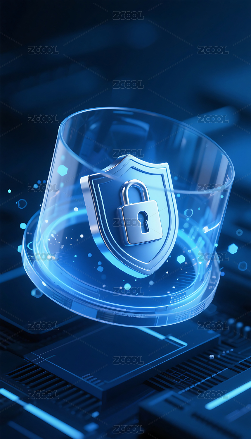深蓝色科技悬浮半透明数据防护罩盾牌背景