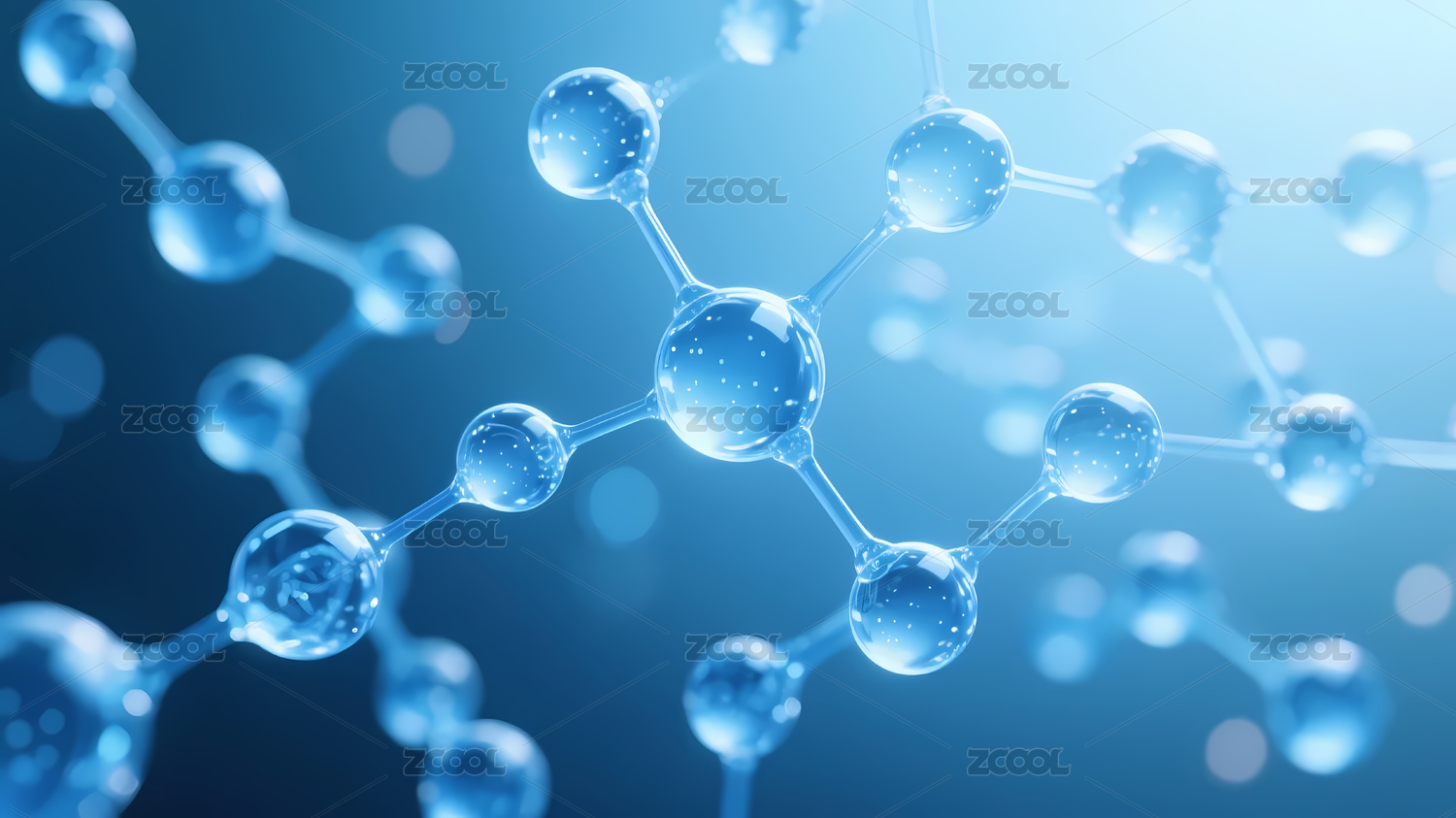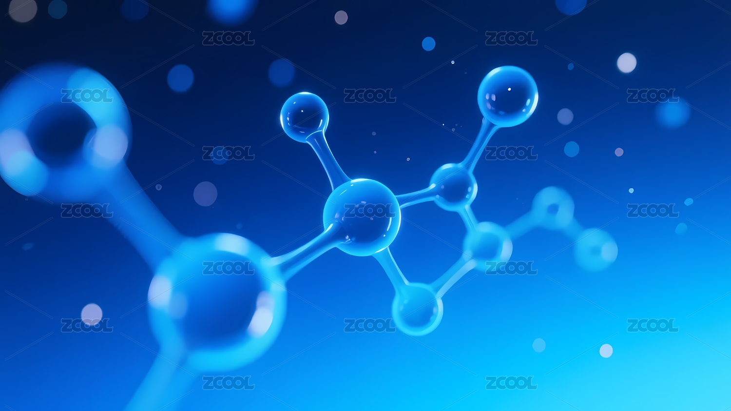 蓝色分子模型与模糊光斑