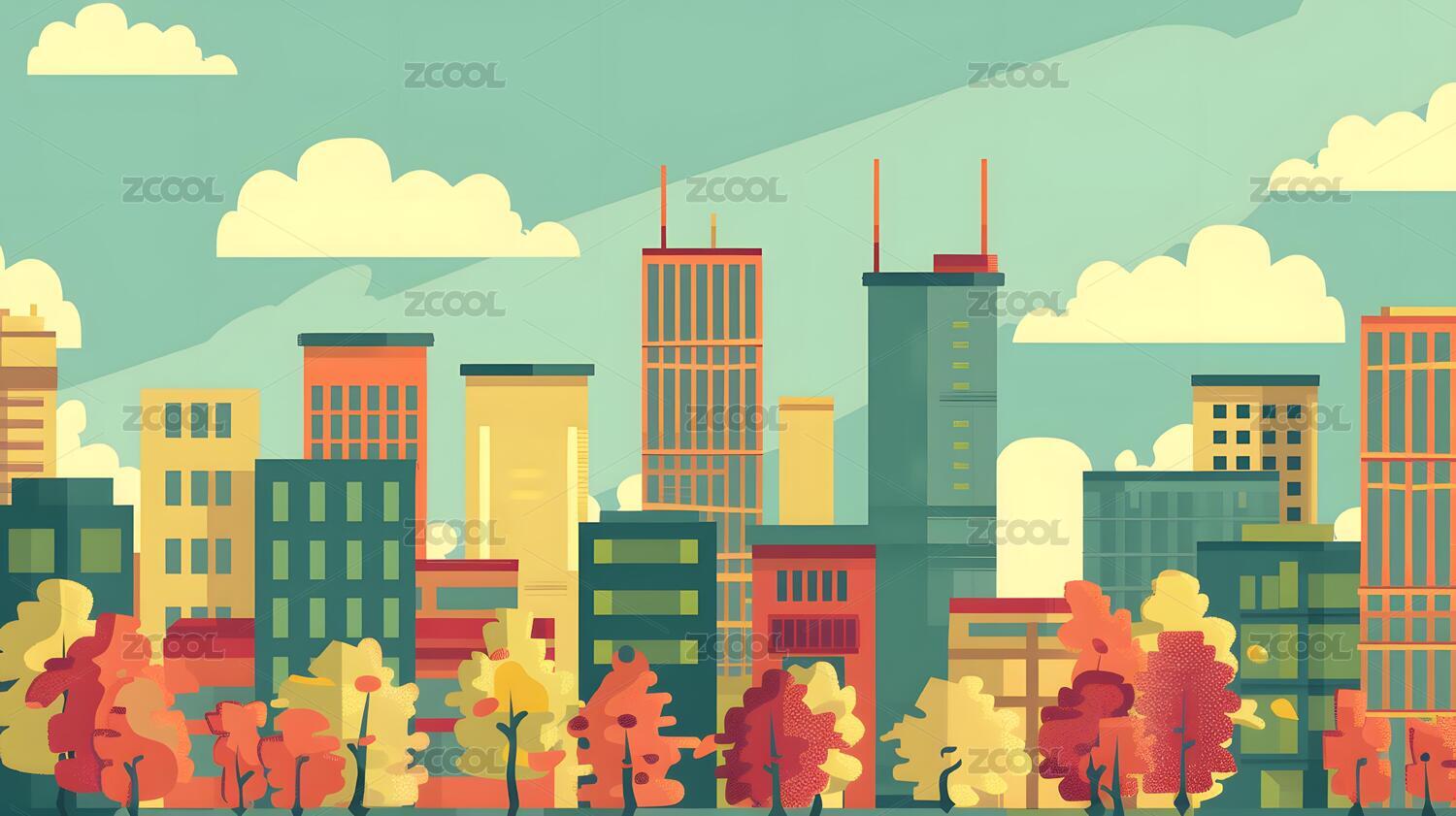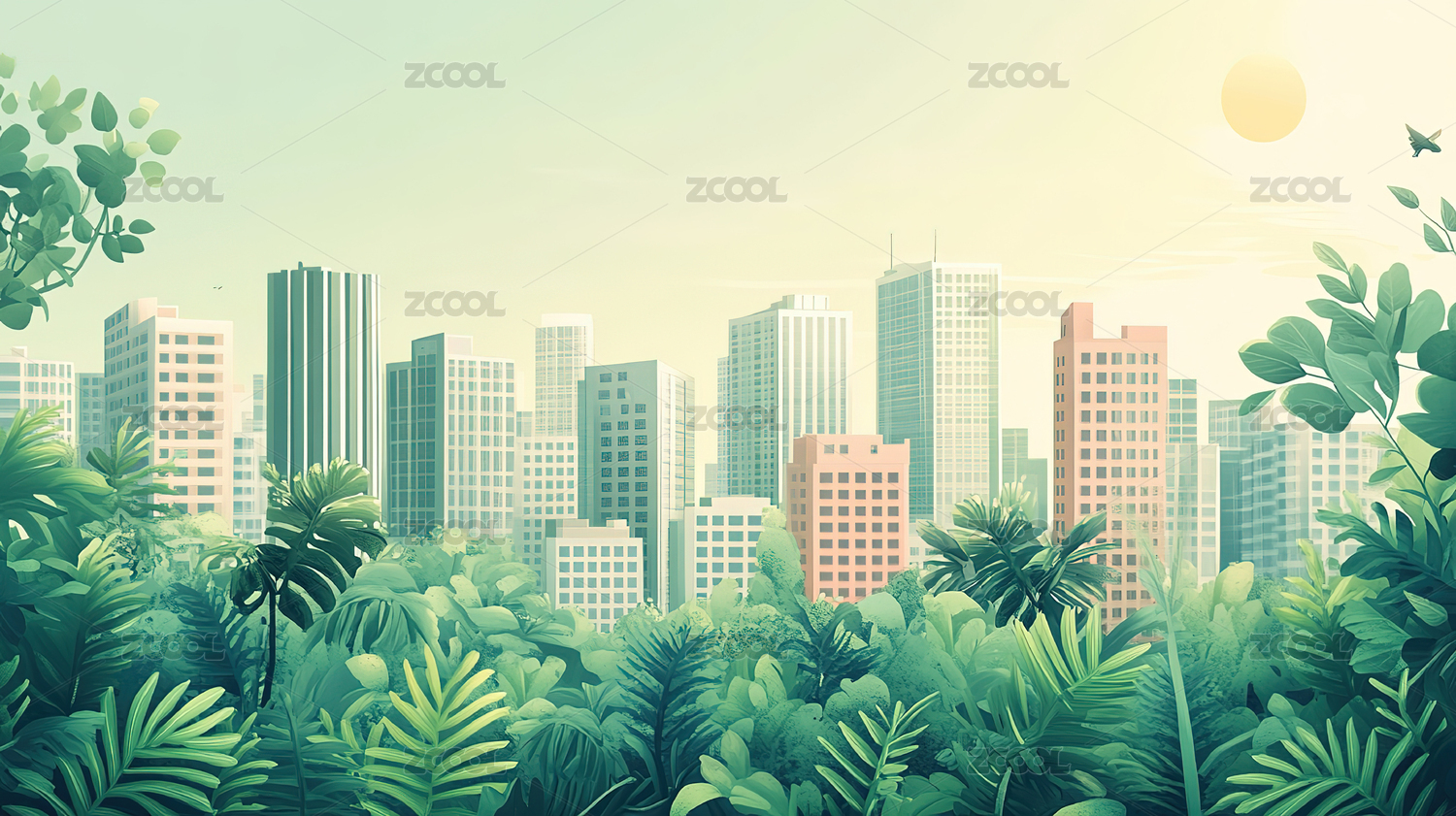 绿色,生态,环保,环境,风景,城市,都市,建筑,植物,插画