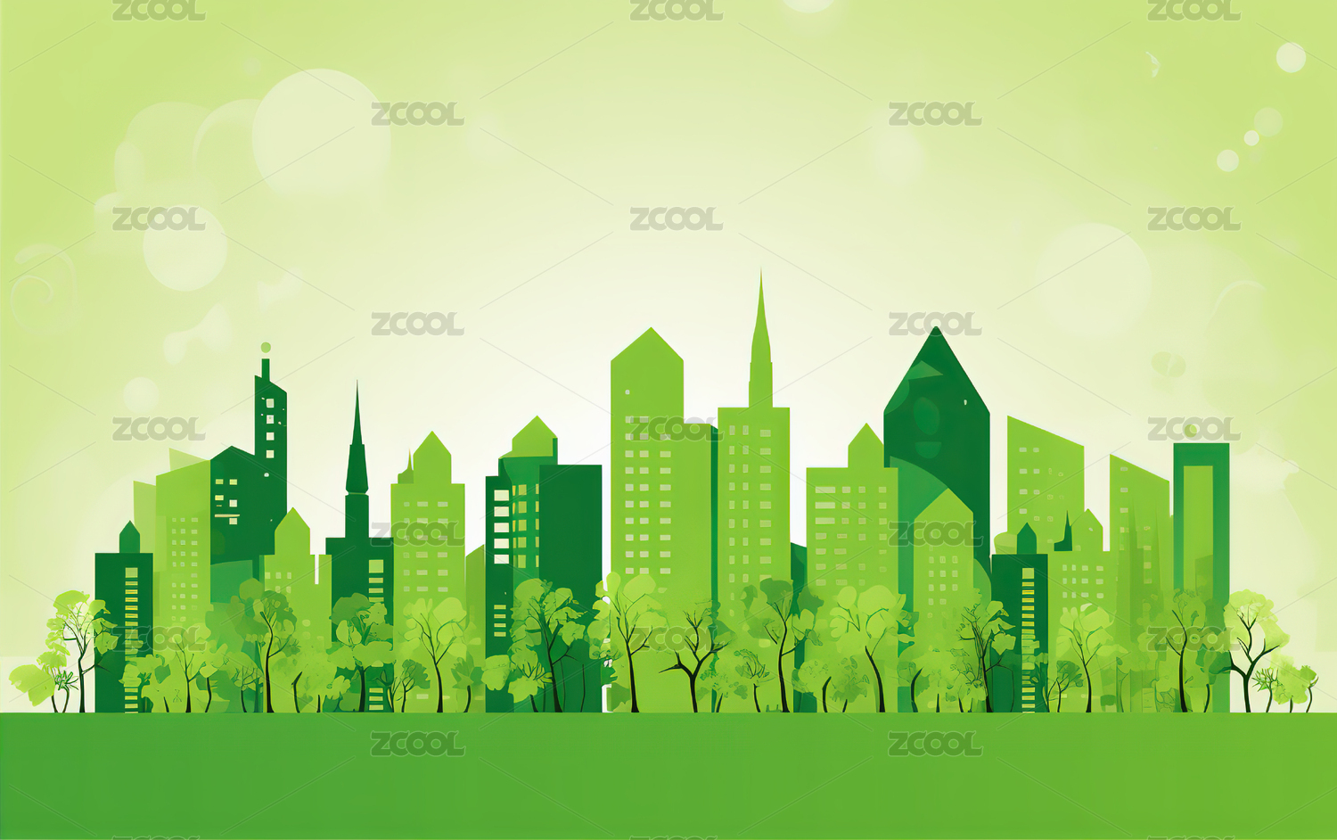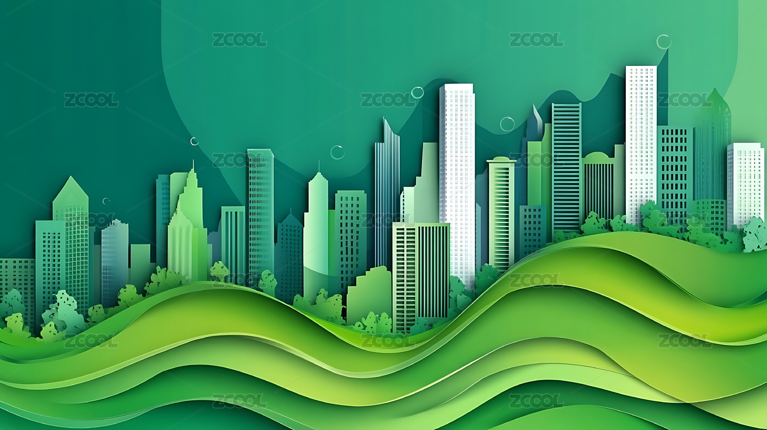 绿色生态环保城市插画背景壁纸