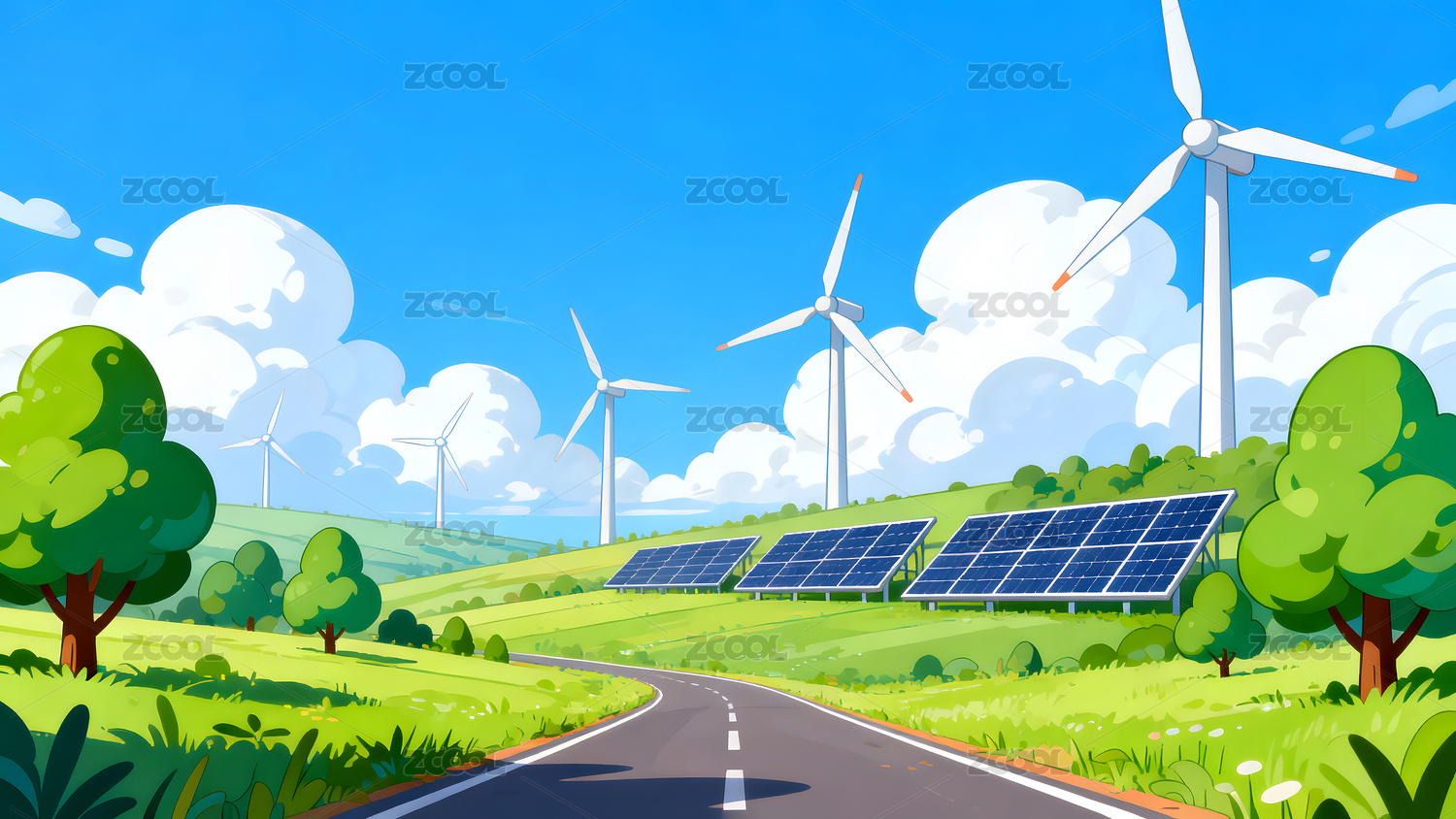 背景,壁纸,绿色,生态,环保,环境,风景,插画,风力发电,自然