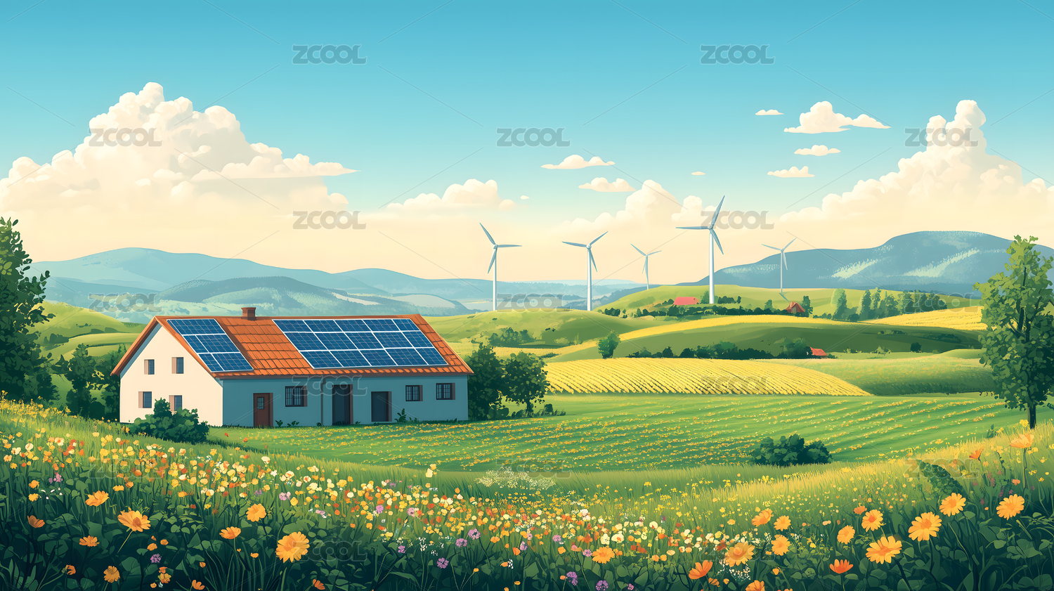 背景,壁纸,绿色,生态,环保,环境,风景,插画,风力发电,自然
