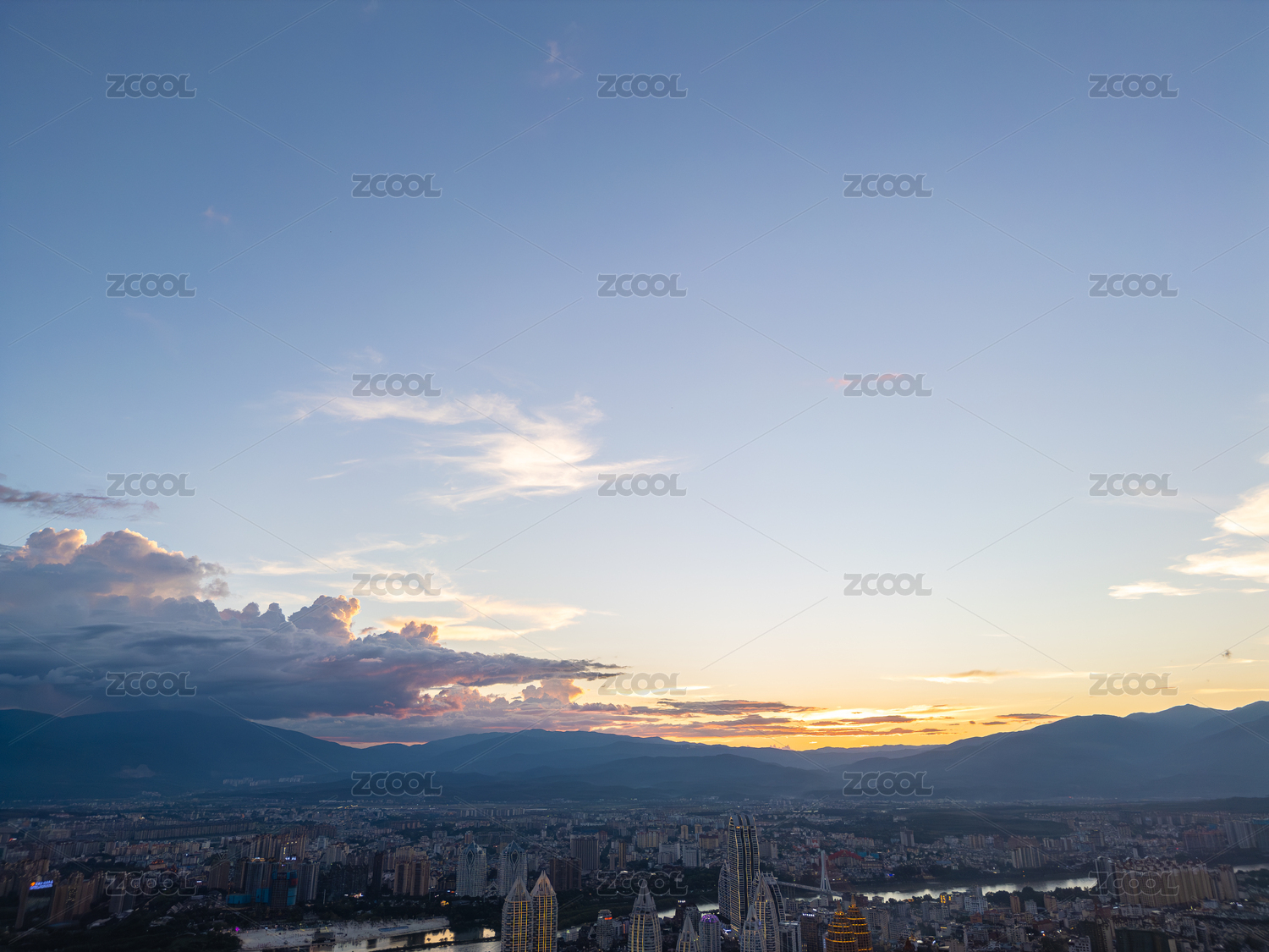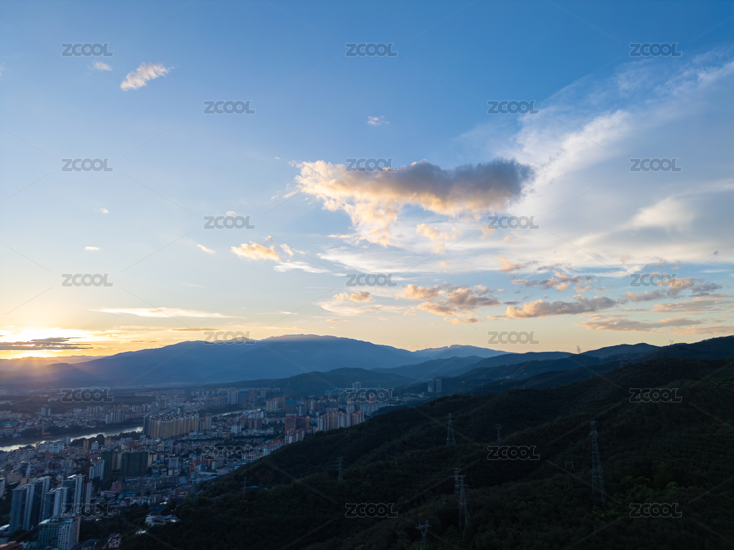 中国云南玉溪城市日出航拍