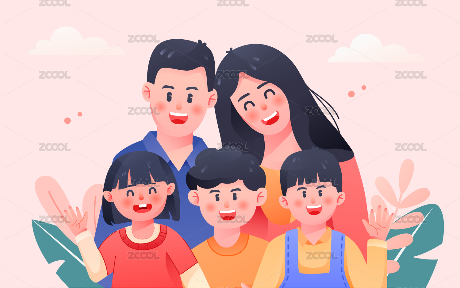 手绘爸爸妈妈儿子女儿家庭成员元素插画