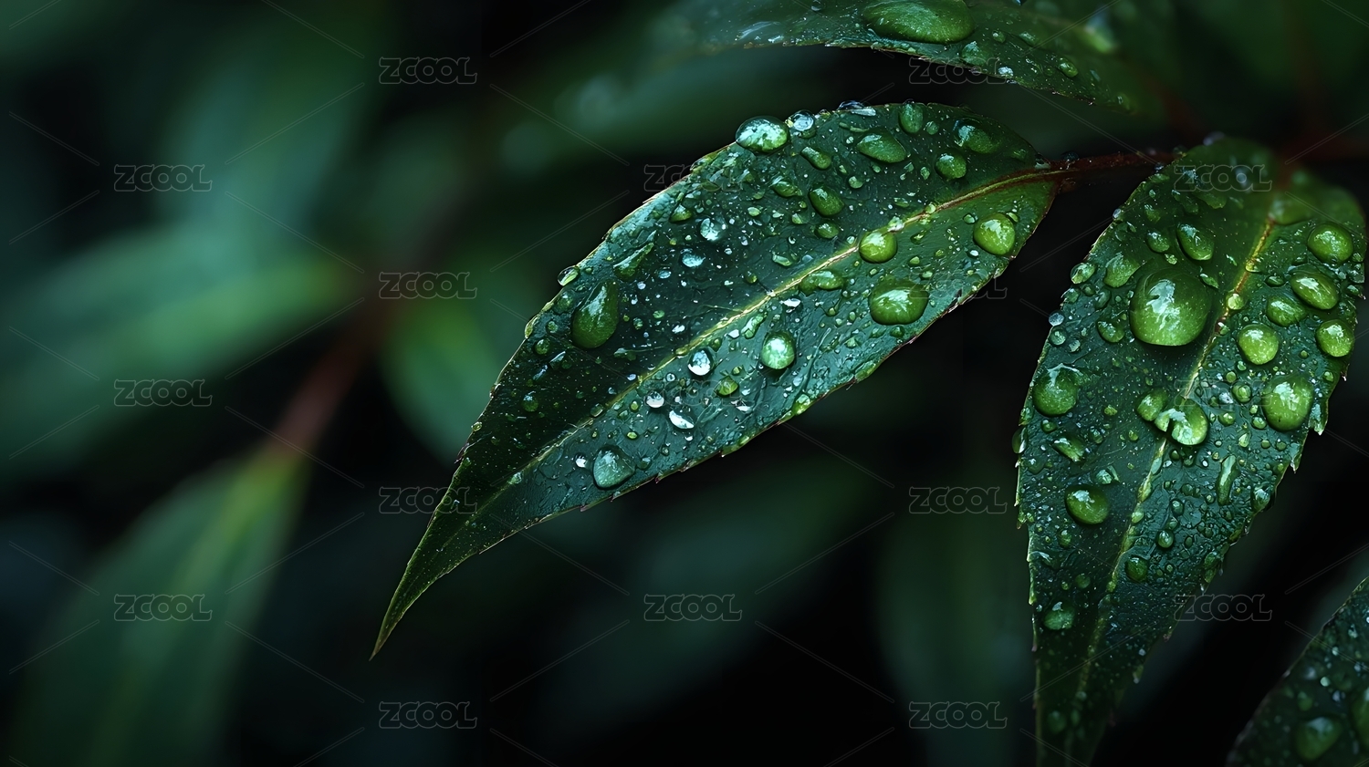 雨水洗礼下的翠绿叶片,晶莹剔透生机盎然