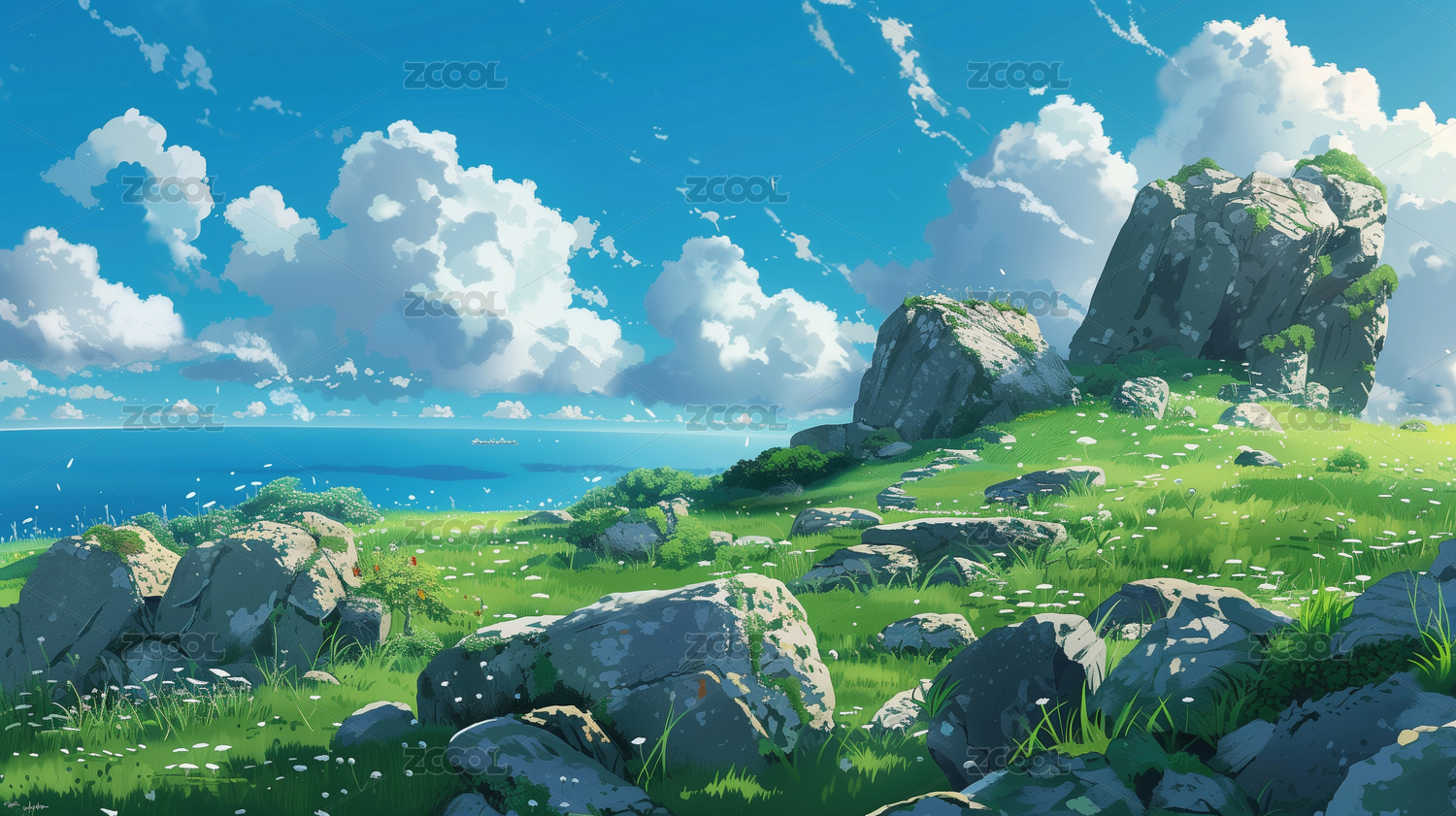 自然,写实,光影,静谧,艺术,清新,唯美,意境,绘画,岩石