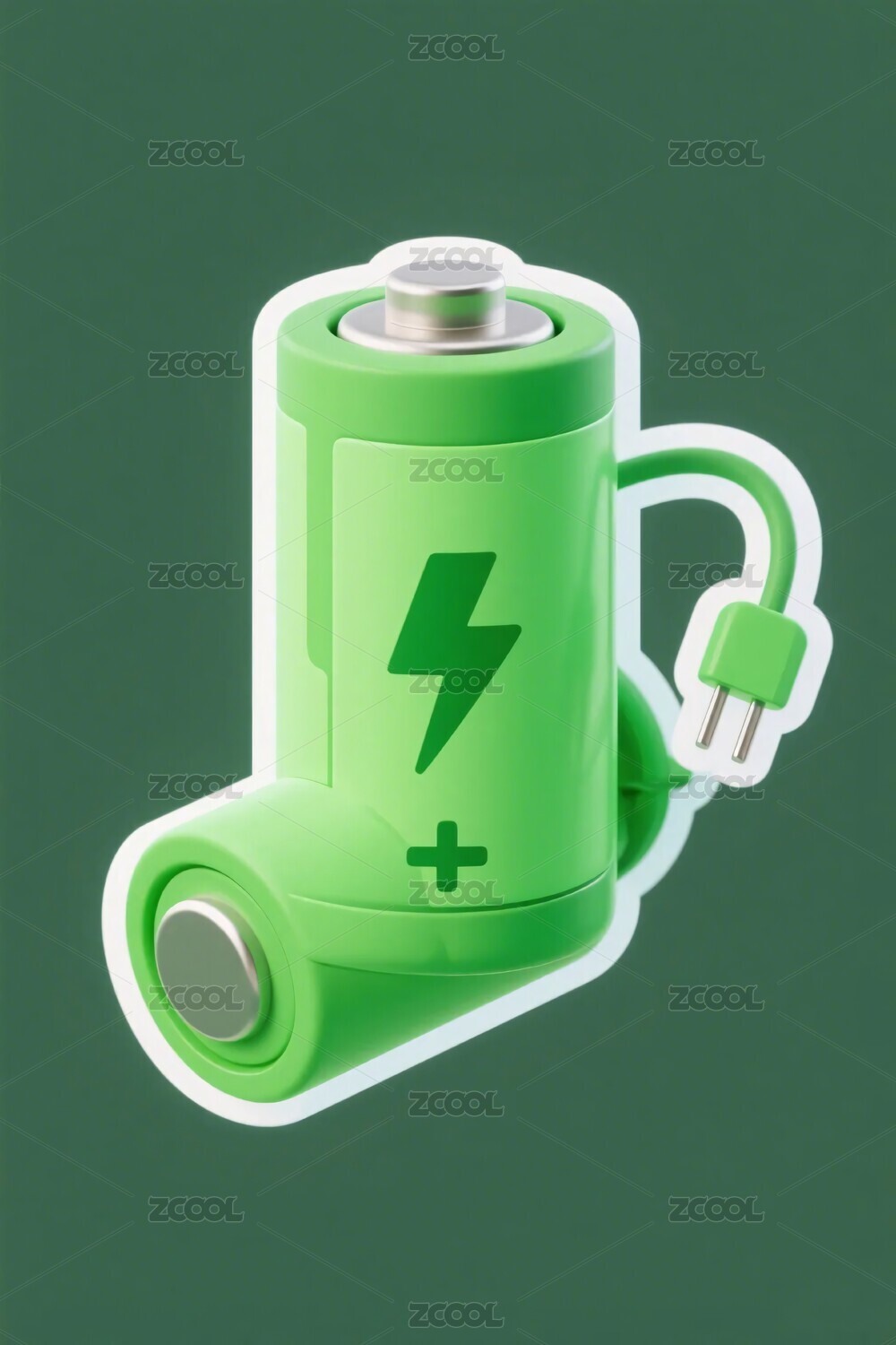 充电图标,电池,闪电,绿色,圆形,插画,矢量