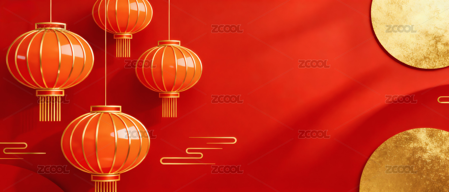 红色灯笼与金色祥云装饰图案