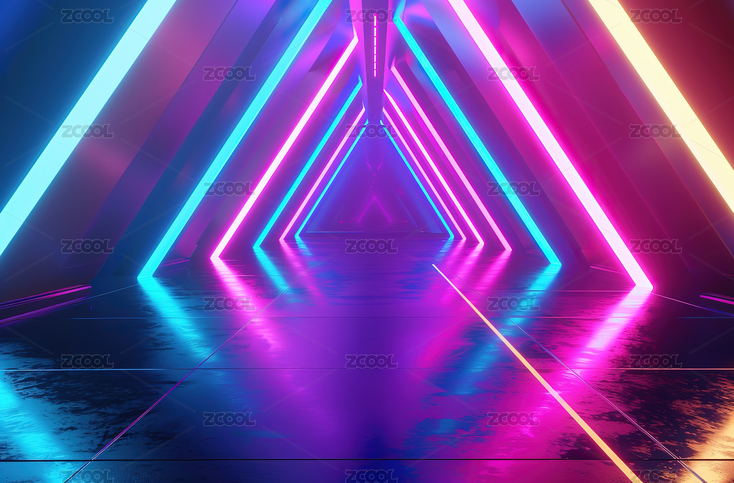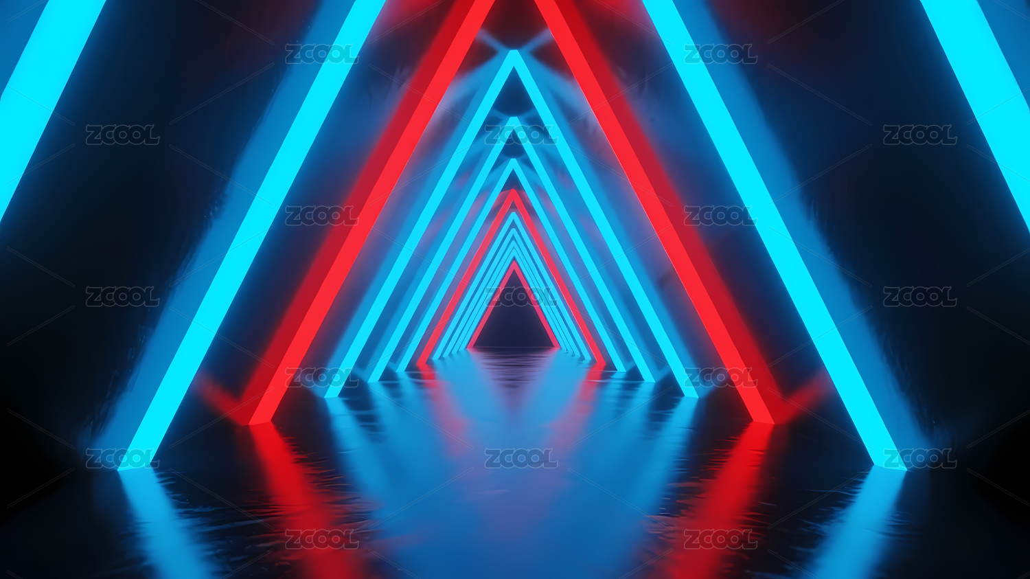 蓝色,科技,光线,深色,隧道,延伸,紫色,三角形,霓虹,未来感