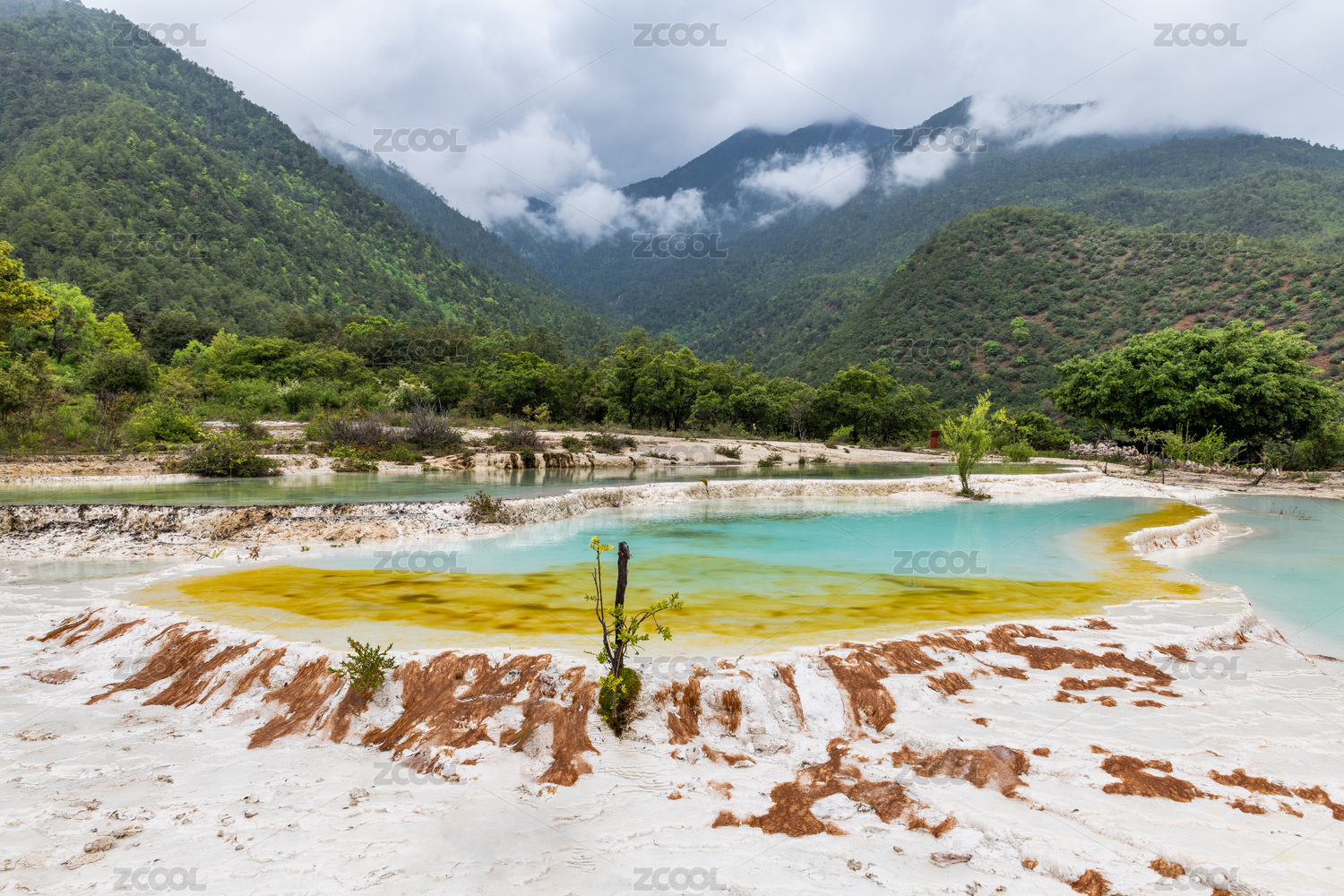 白水台,云南,迪庆,香格里拉,台幔,碳酸盐,泉华台地,碳酸钙,沉淀,泉华